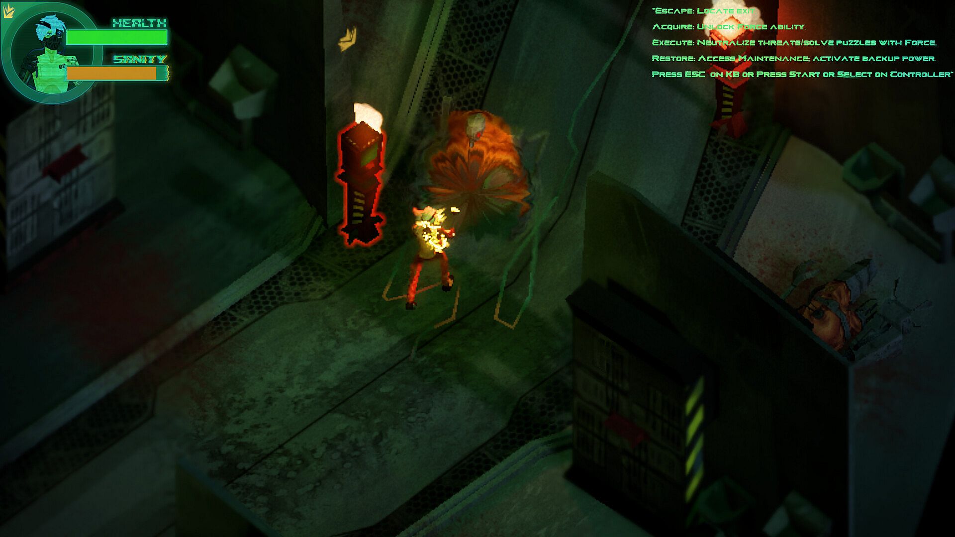 • Devastating Power vs. Mental Collapse: You are not helpless, but your power comes with a price. Unlock four elemental psychic abilities Force, Ice, Fire, and Electricity via experimental injections. Use them to shatter enemies and manipulate the environment. However, every use drains your Sanity. Deplete it, and you face the Insanity Debuff: your health drains, your vision distorts, and reality fractures. Will you risk your mind to survive the encounter?