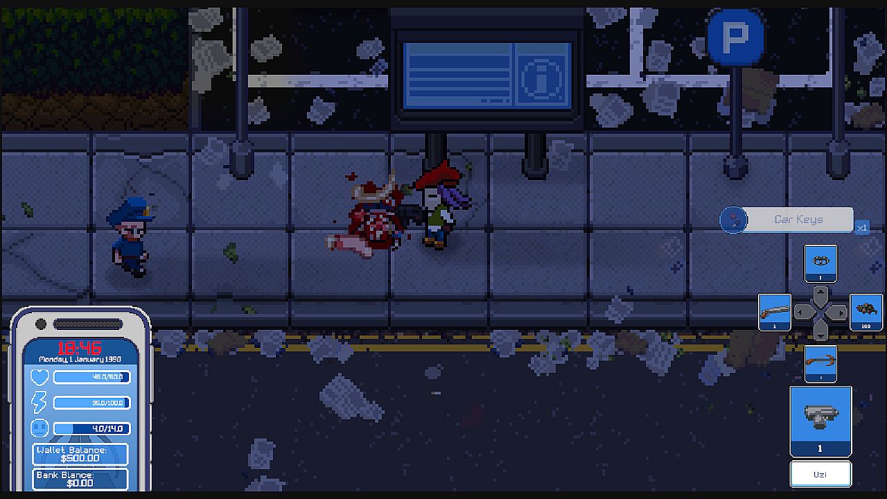 In this pixel art adventure you'll play as PsycassoĀ®, a struggling gallery artist living in an open world city. By day you'll work a day job to earn money and level up skills, seamlessly blending into society. By night you'll be on the lookout to harvest 'red paint' from one of the 'walking meat-bags' to help you create original 2D art. Sell your artwork to art galleries for huge profits! Become rich from your unique artwork while avoiding capture from the ever growing police presence using stealth techniques and unique traps. Buy property, upgrades, furniture, weapons, discover a bustling city and play a host of mini games in this controversial indie title like nothing before.