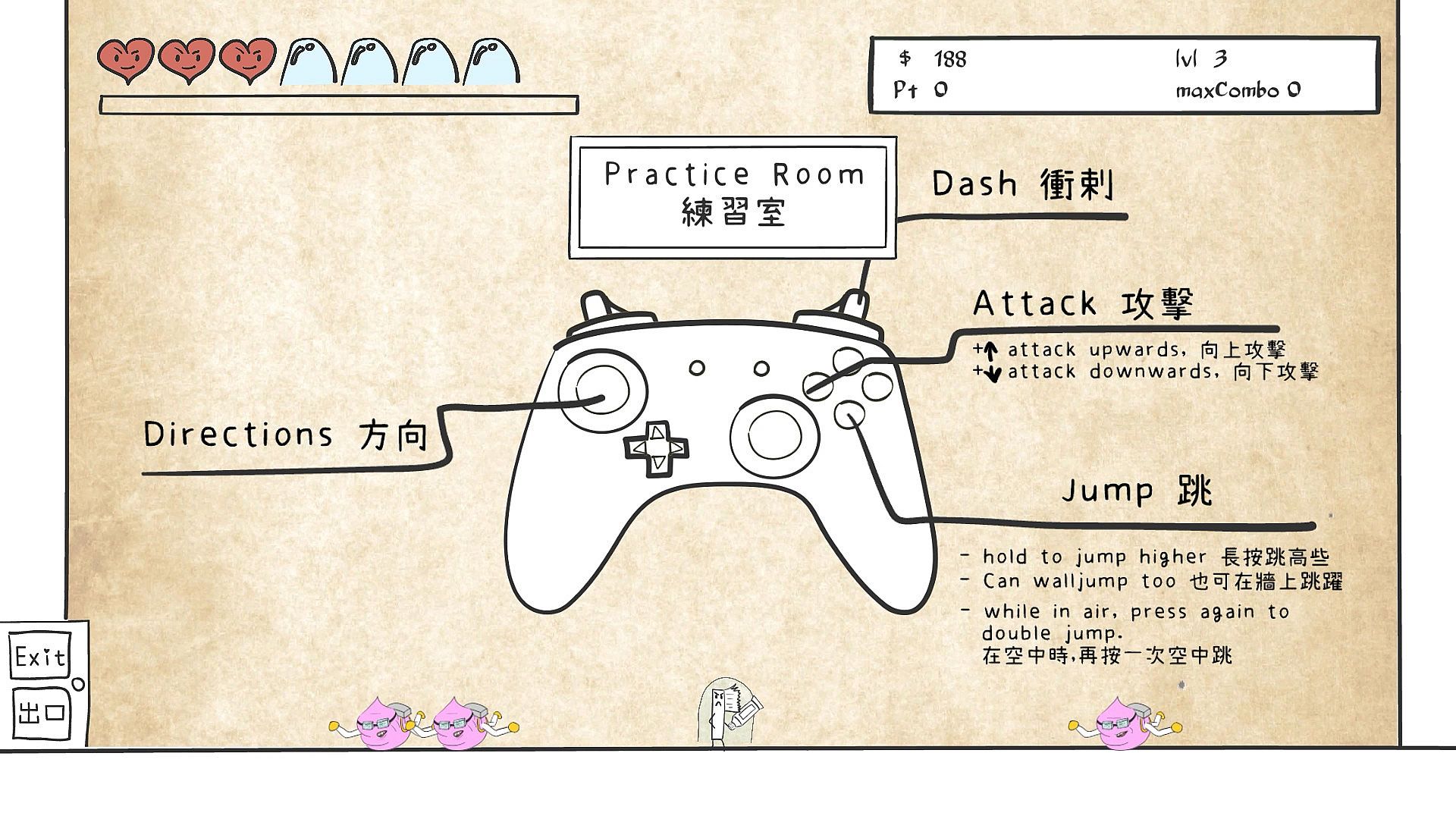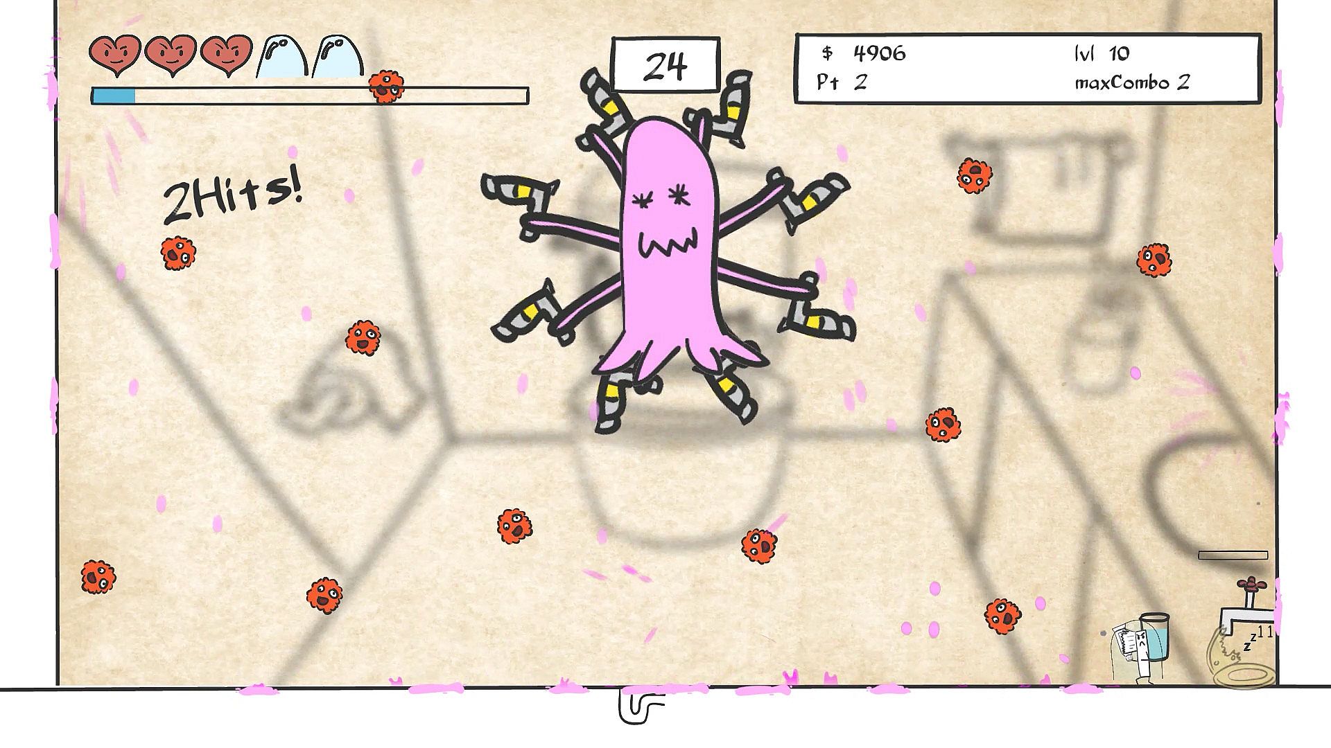 Slash the filthy enemies in their faces, attack them from below, hit and bounce on their heads (homage to Hollow Knight!) Perform combo streaks to activate your mouthwash for critical hits and speed buff.