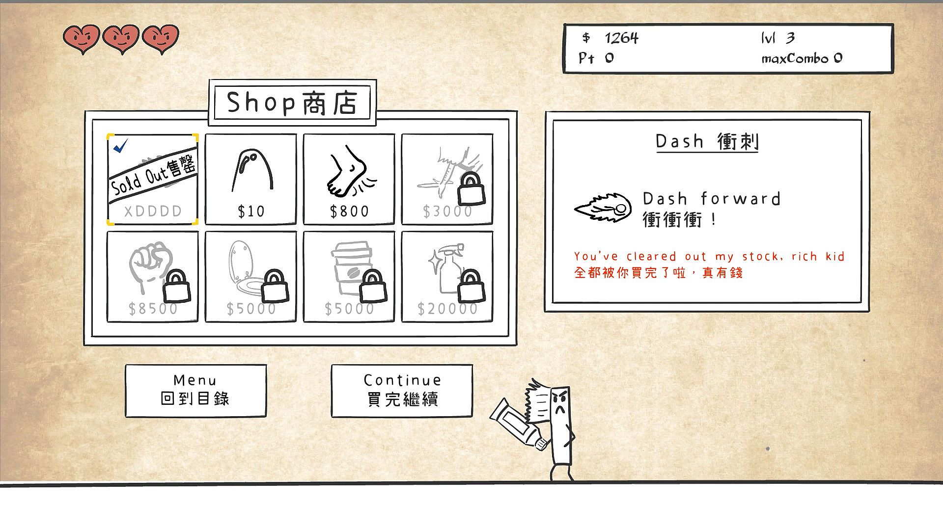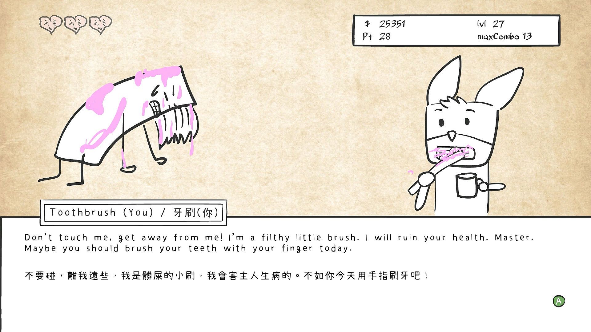 Chat heart to heart with your master during the tooth-brushing session after every battle. Explore his bitter-sweet story - well, sweet only if you can beat the game. Otherwise, it’d just be a bitter story.