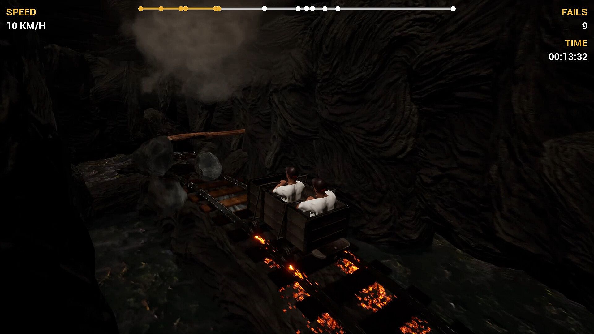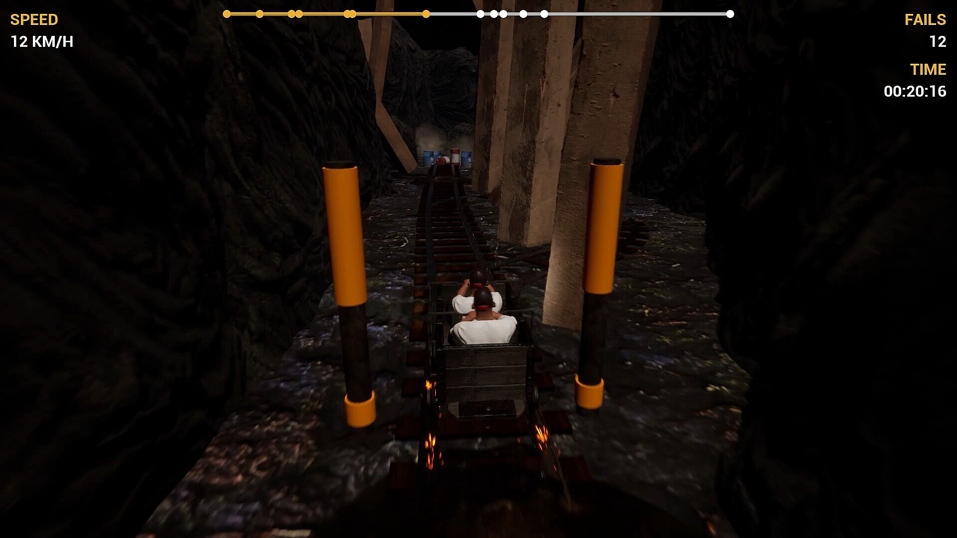 In singleplayer, you control the cart entirely on your own and must coordinate every movement perfectly to navigate the dangerous passages. In co-op, you share control of the cart - only clear communication, perfect synchronization, and mutual trust will get you through. Every mistake affects both of you immediately.