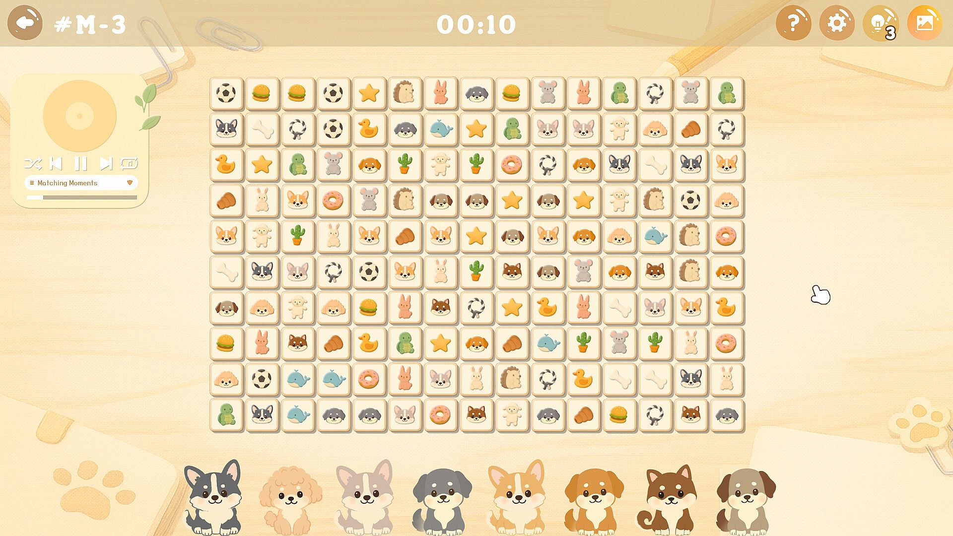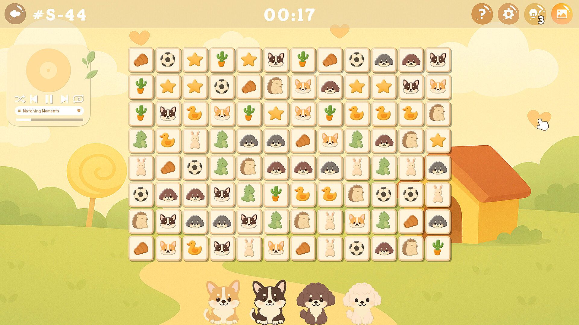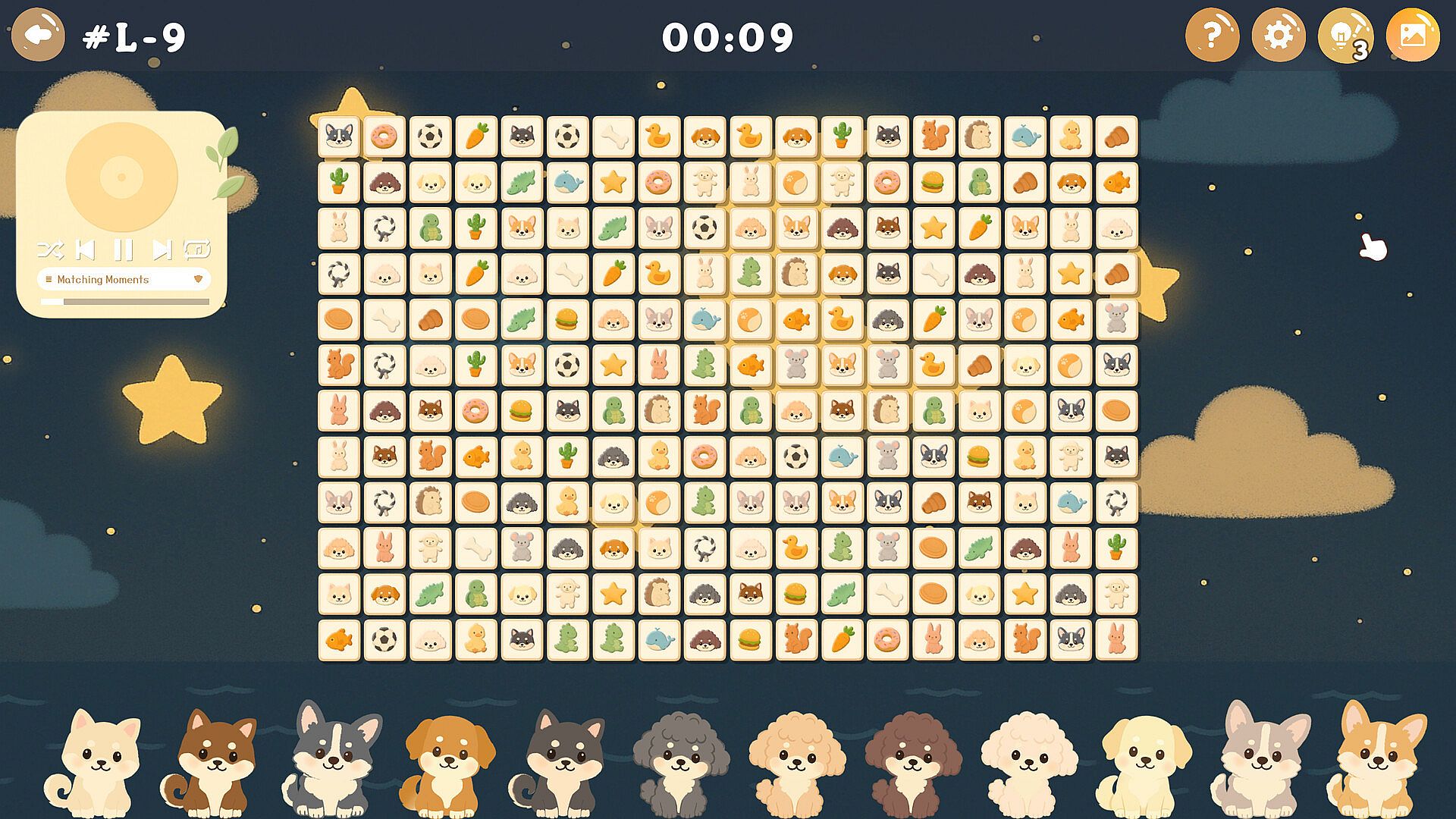 • Classic Gameplay, Gentle Challenge At its core, Puppy Link is a classic tile-connect experience. Your goal is simple: tap two identical tiles that can be linked with no more than two turns to clear the board. While the rules are easy to pick up, planning your routes and spotting pairs against the clock will provide a satisfying challenge to your observation and memory.