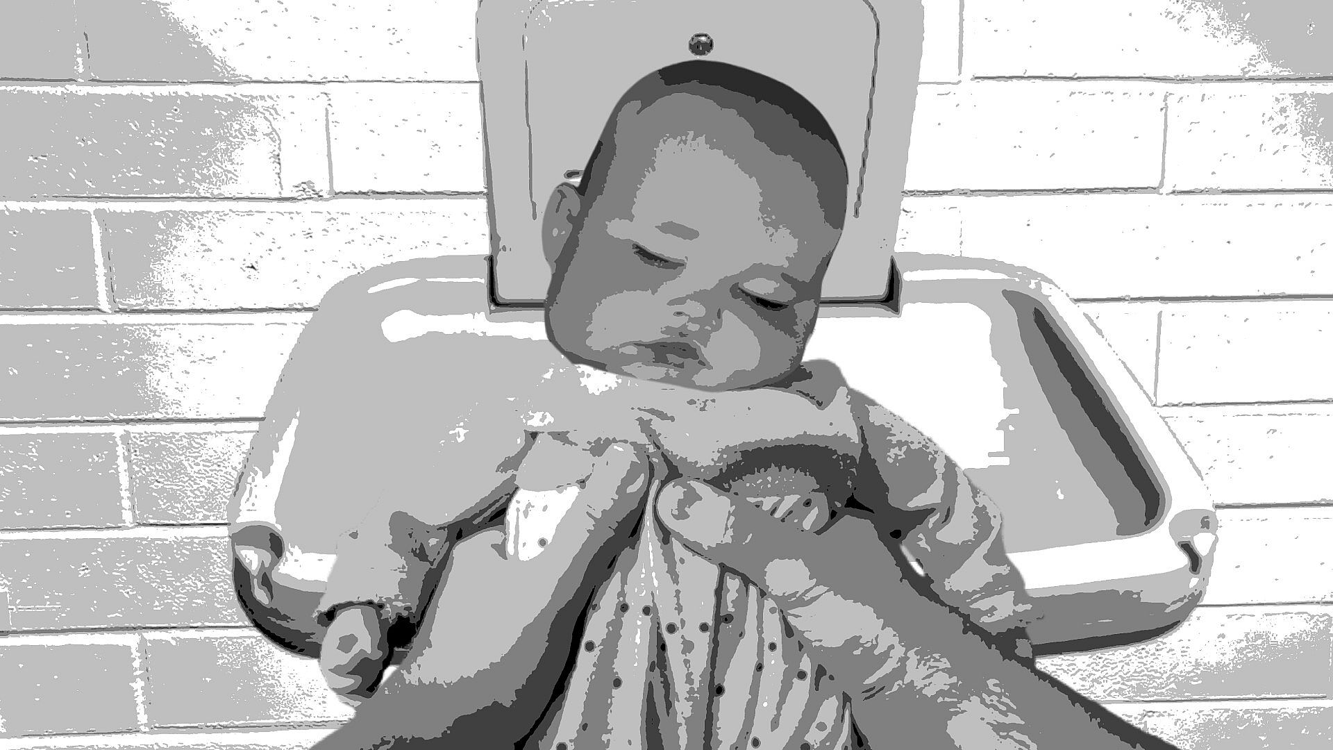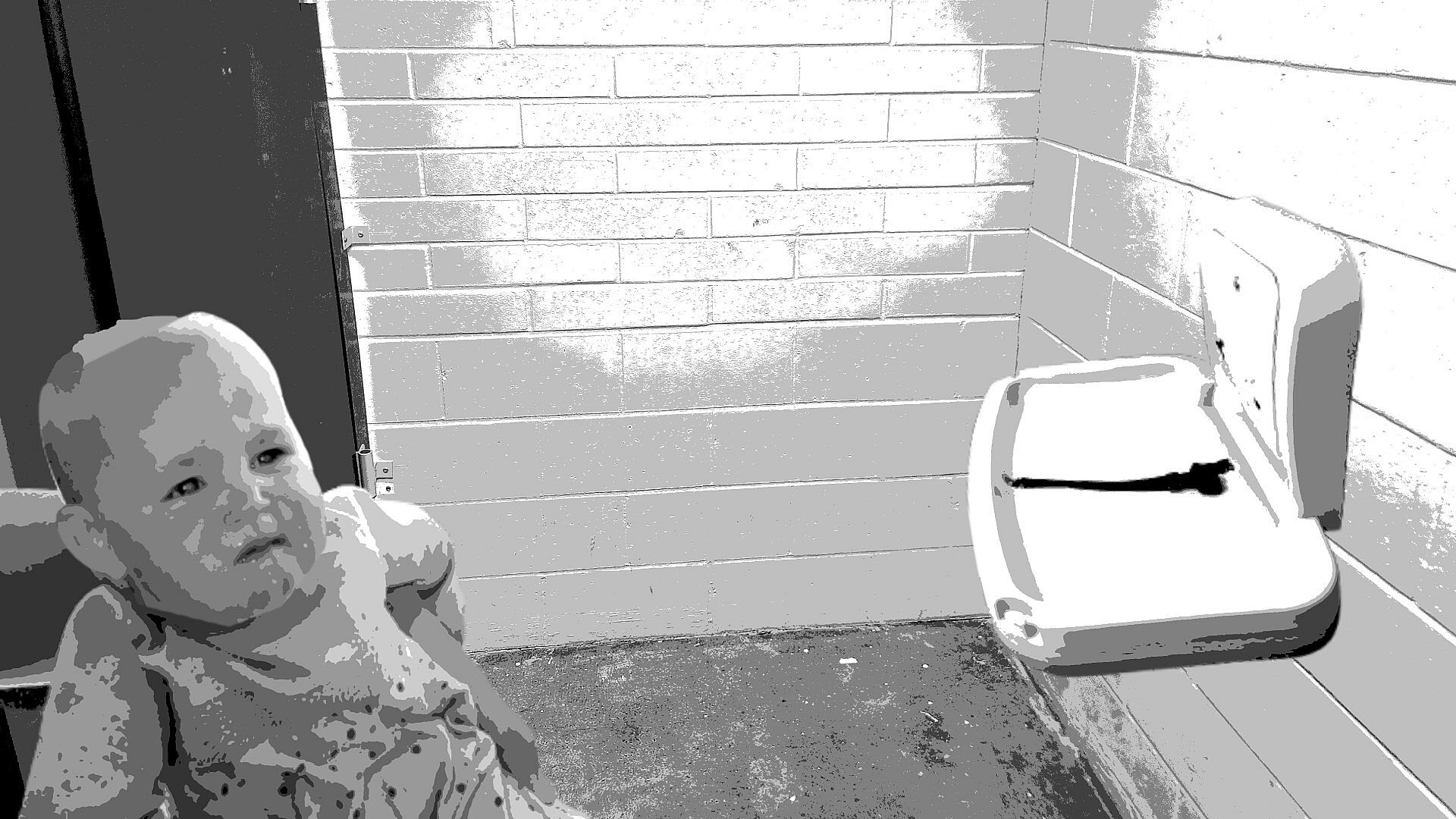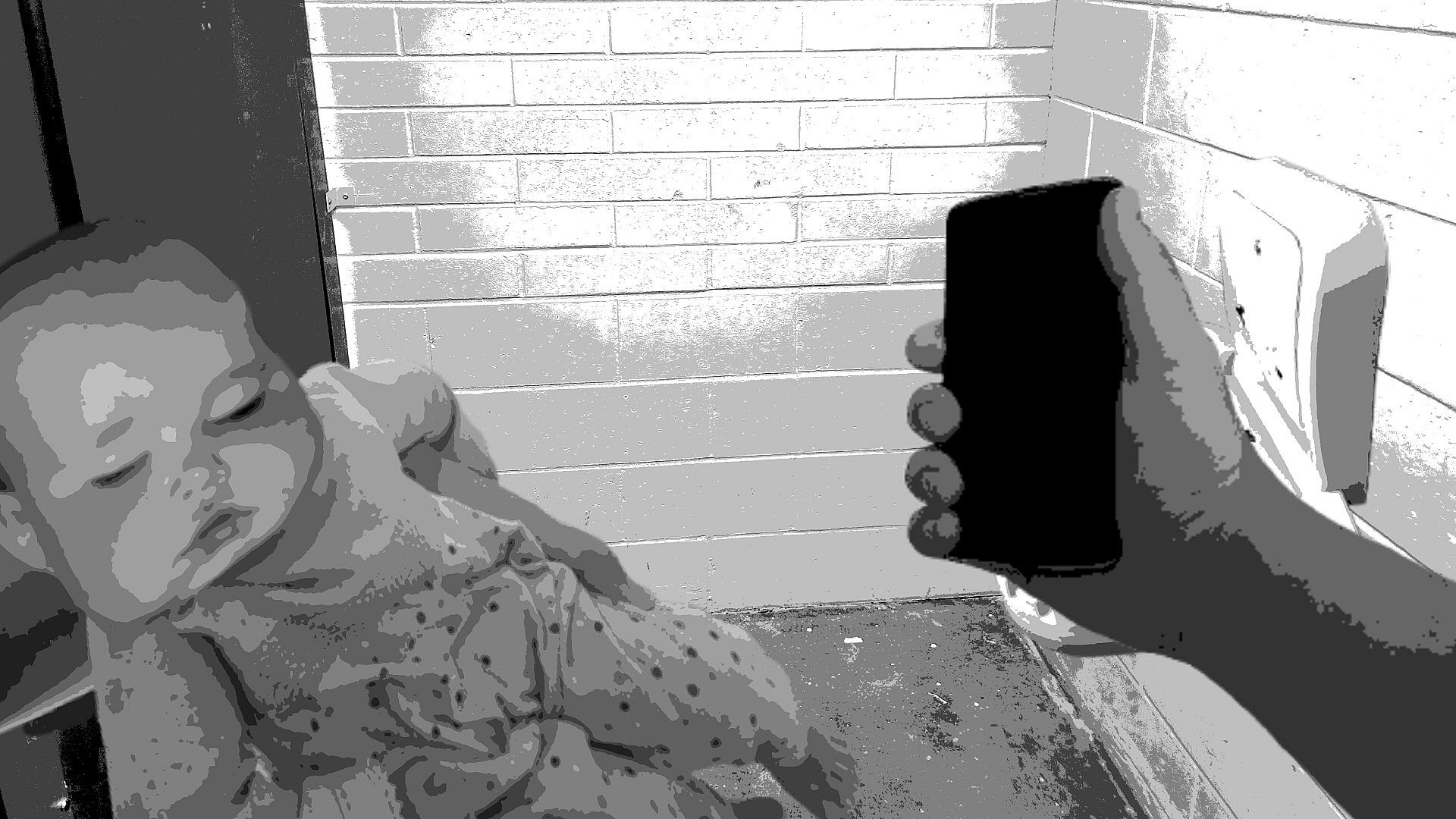 In Purple Maniac you play as a father with his baby in a bathroom stall. Then a murderer and his latest victim enter the restroom. You have to keep your baby quiet while you hear the slaughter coming from right beside you. Do you cover your baby's ears to the sound of a power drill or rock them to sleep?