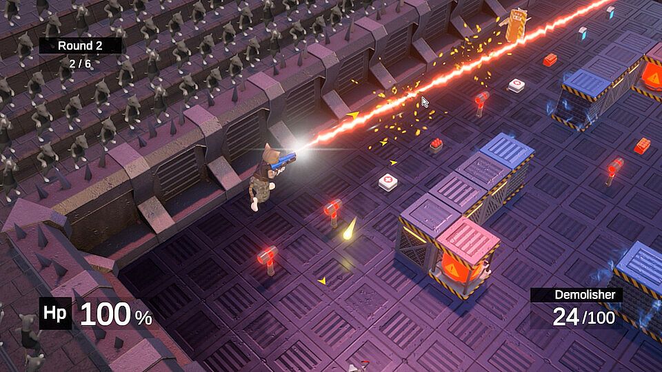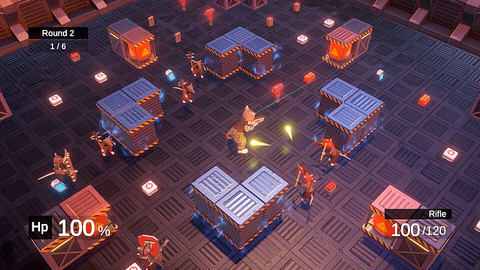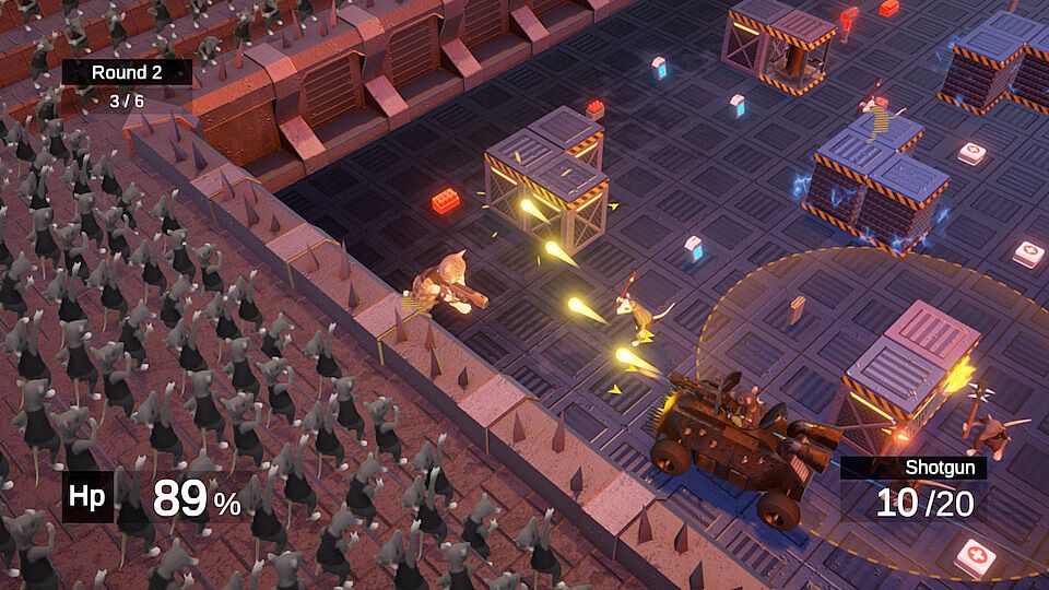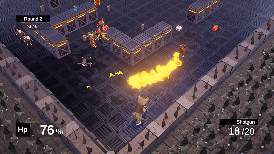 Step into the paws of a fearless feline in this top-down survival shooter, where a cat is thrust into a deadly rat-run gladiatorial arena. Armed with a variety of guns, you must fight off waves of ruthless rat minions while navigating an ever-changing battlefield. Each stage introduces new challenges as walls rise and obstacles appear, forcing you to adapt quickly to survive.