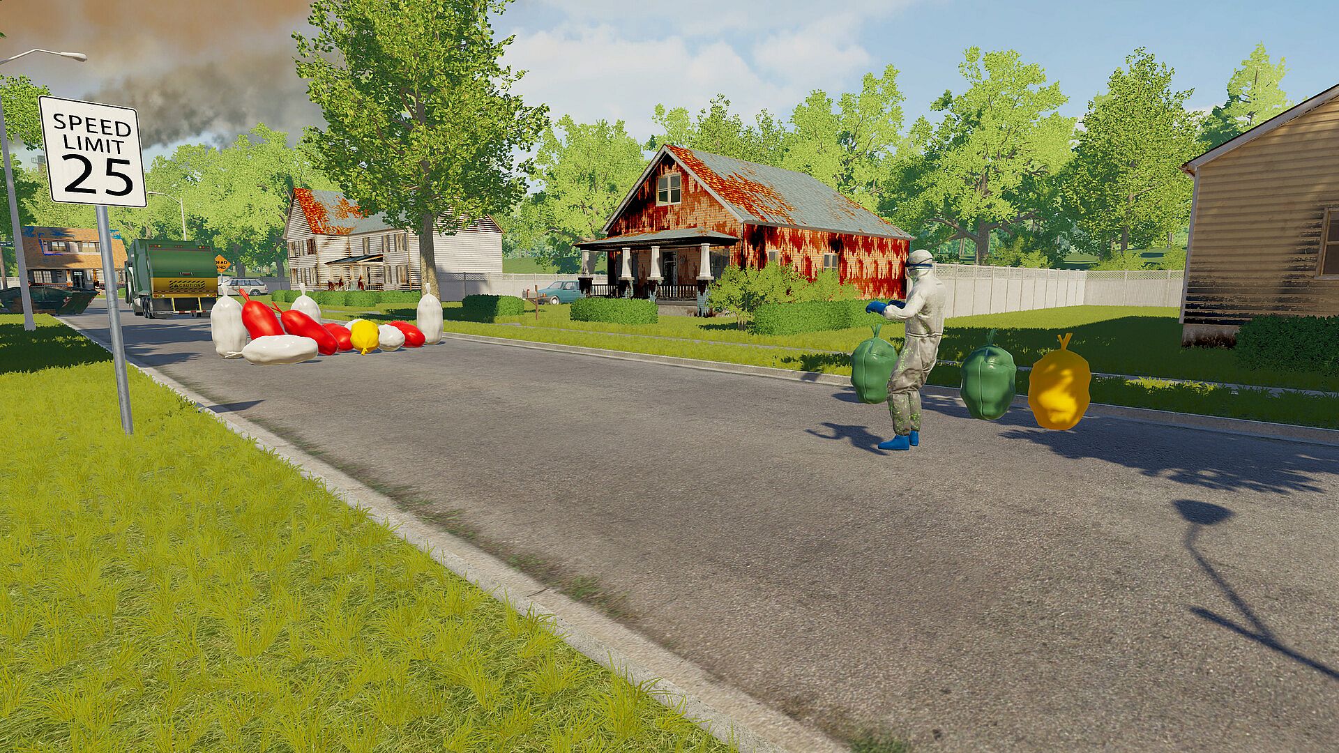 Players can switch between absurdly satisfying cleaning gadgets, including: