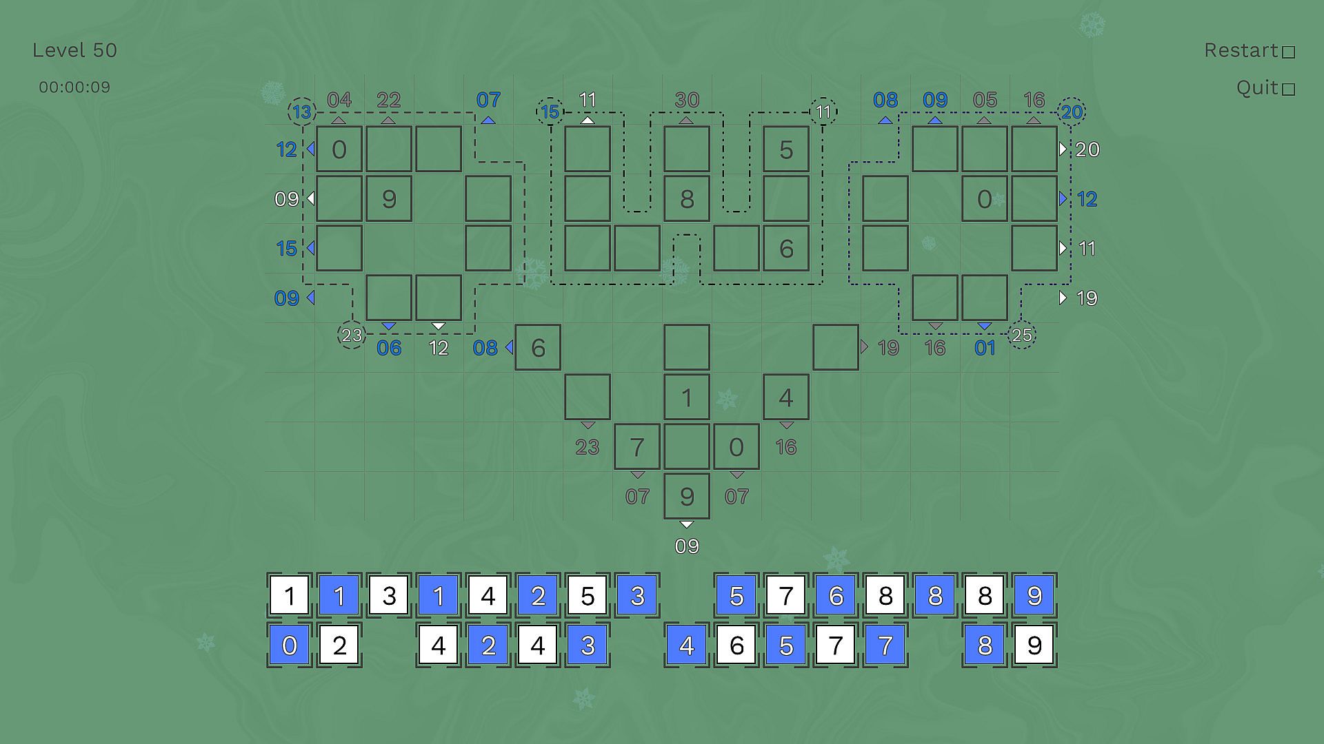 Puzlogic is an unique logic puzzle game inspired by sudoku and kakuro (cross sums).
