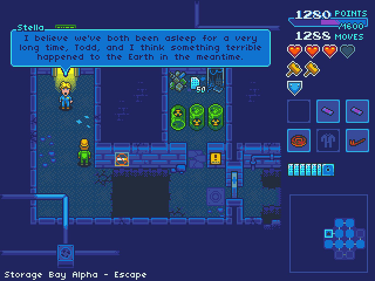 What starts as a simple matter of pushing boxes around a warehouse quickly escalates into a perilous puzzle adventure through a world of giant insects and rogue robots. Survive deadly roach-filled grottos, bubbling lakes of caustic goop, and the twisted industrial ruins of the eponymous Depot-13. Join survivors Stella, Todd, and other memorable characters in this comedic retro-futuristic brain-expanding quest through the most puzzling of Depots!