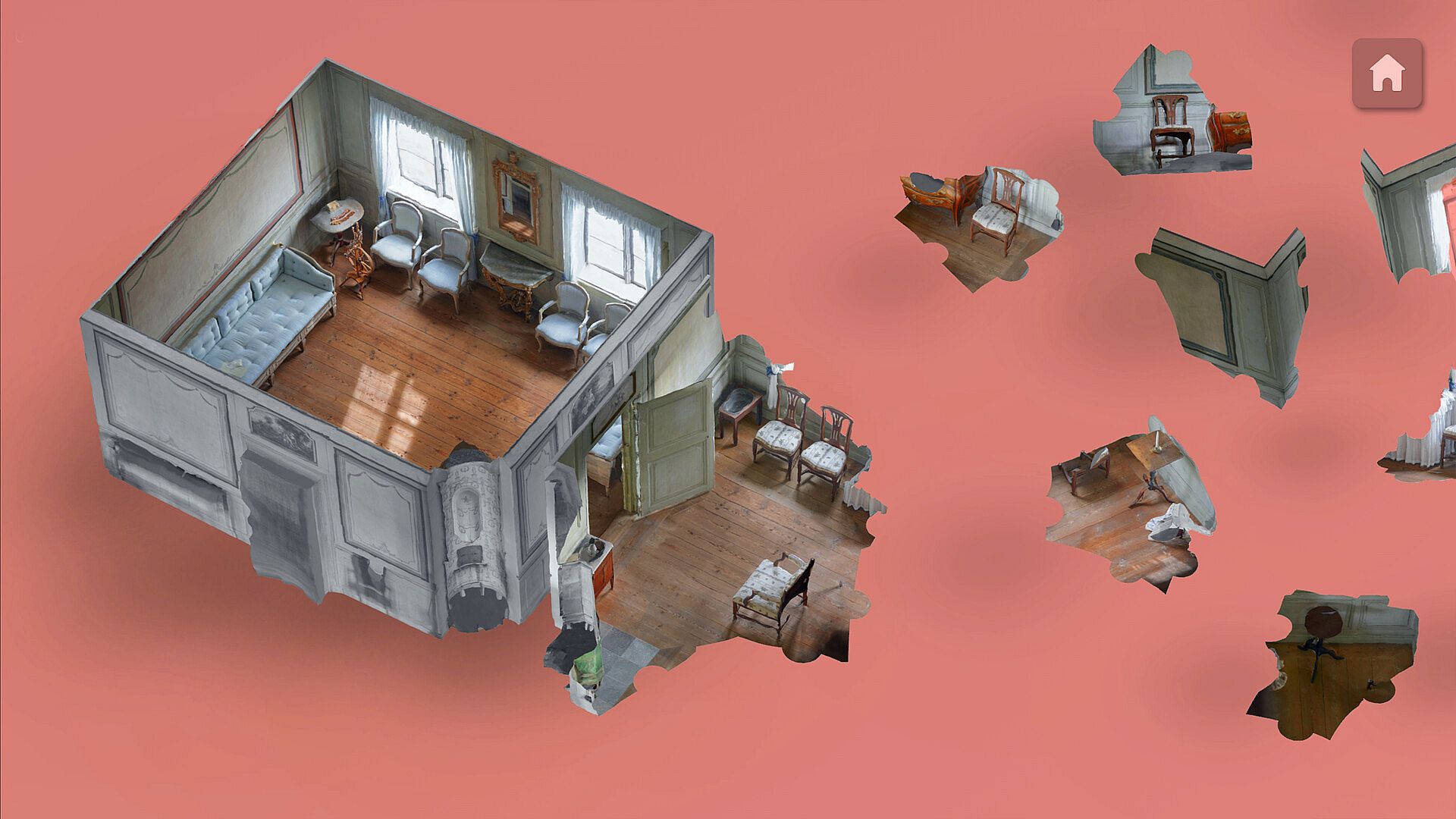 Tabletop Mode: start with all the pieces, sort arrange and build the fractured diorama piece by piece like a real world jigsaw.