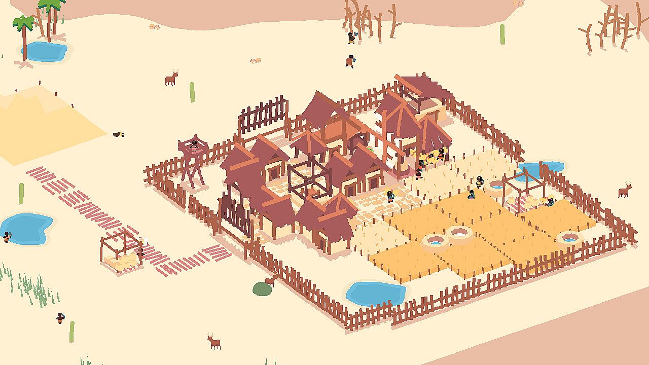 Start out with your town center and gather food to survive. Expand your village to have farms, windmills, and houses for more people to live in. Learn how to hunt, farm and mine, and build a thriving community. Exploring, you find oases, antelopes, and the ruins of an ancient monument.