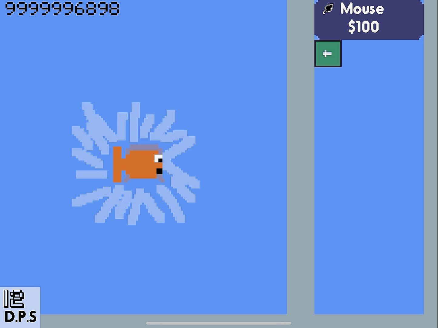 In Pyrite Tycoon, you can hire Pyrite the goldfish to help you make profits. Watch Pyrite go to work for you, collecting rocks and selling them.