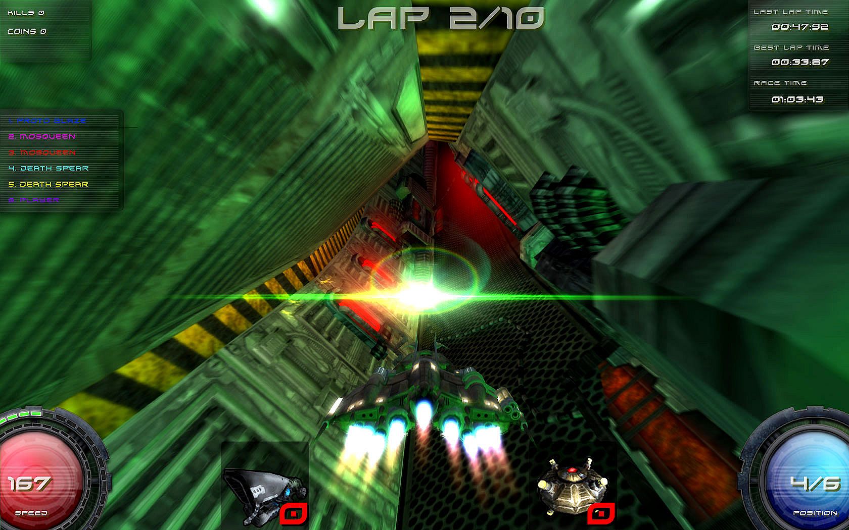 As the players fight their way through the championship, improved Blazers with better speed, handling and superior firepower become available. Players also have the ability to pick up weapon and ammo upgrades during the race, further enhancing their ability to land the killer blow.
