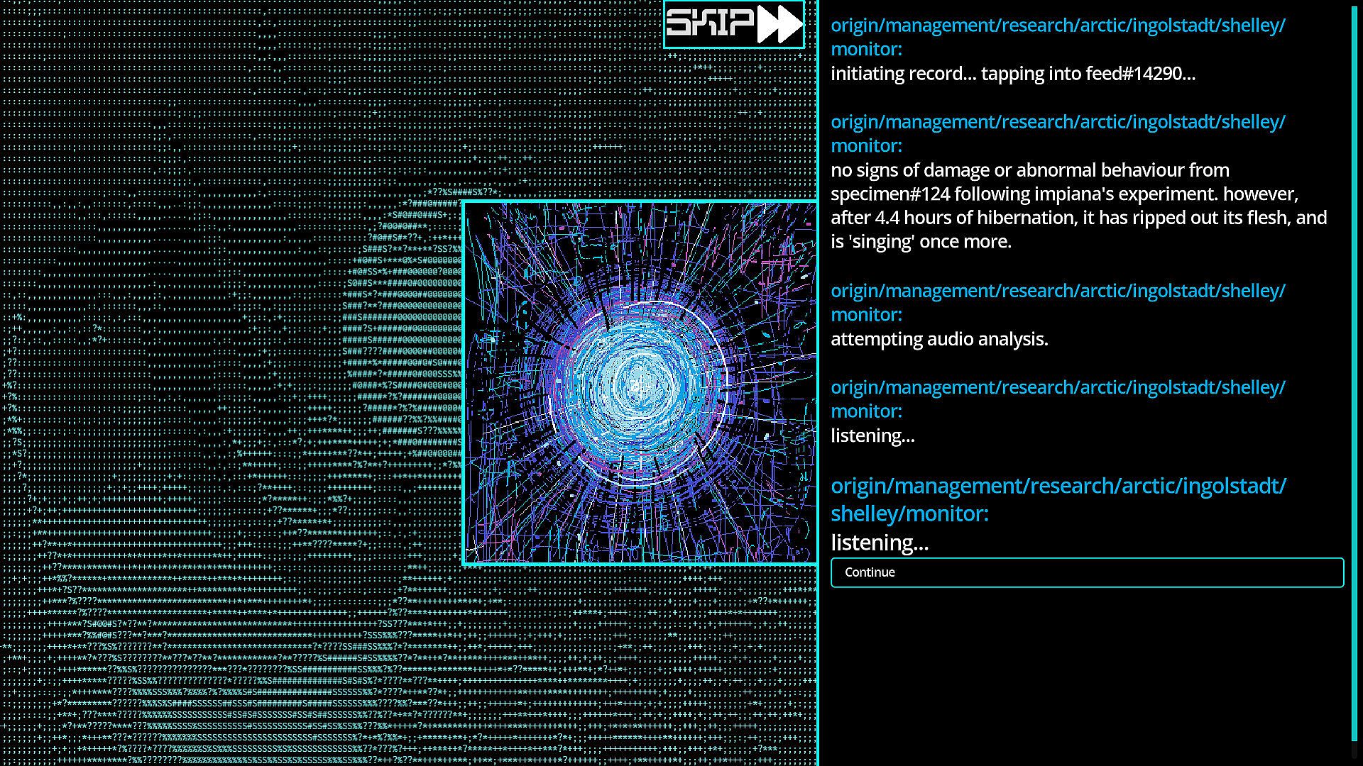 AN ISSUE OF UTMOST URGENCY REQUIRES YOUR ATTENTION. THERE HAS BEEN AN INCIDENT AT THE INGOLSTADT RESEARCH BASE, RELATED TO THE SHELLEY PROJECT. DECISION-PARALYSIS IS IN EFFECT. PLEASE REVIEW THE NECCESSARY CONTEXT, AND GRANT YOUR INPUT.