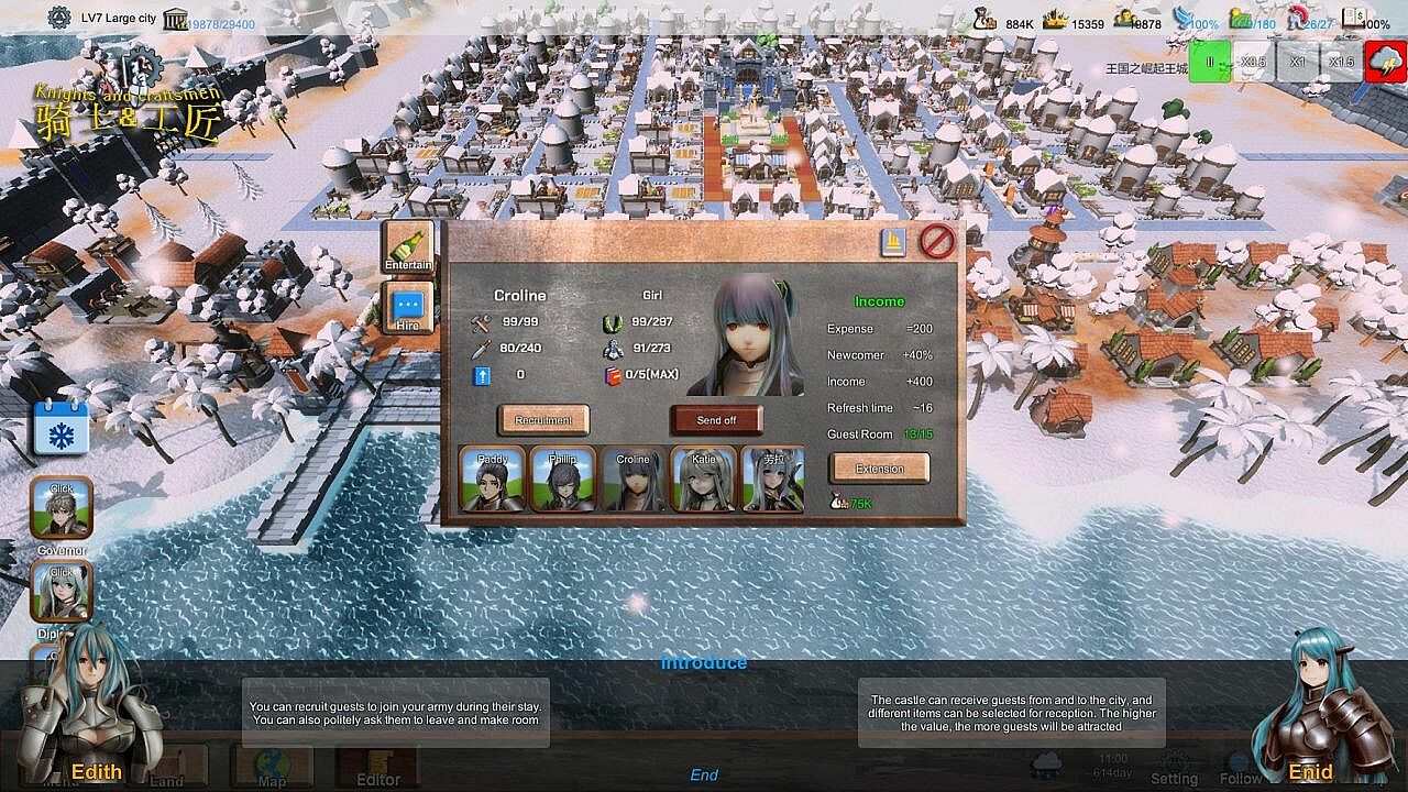 Characters and equipment -- Knights can obtain skill points by working and commanding battles, or they can strengthen their abilities by using the city's training facilities. Lords can obtain equipment blueprints through missions to forge equipment, or they can obtain fallen equipment by defeating hostile forces. The knight can gain a lot of ability improvement with excellent equipment.