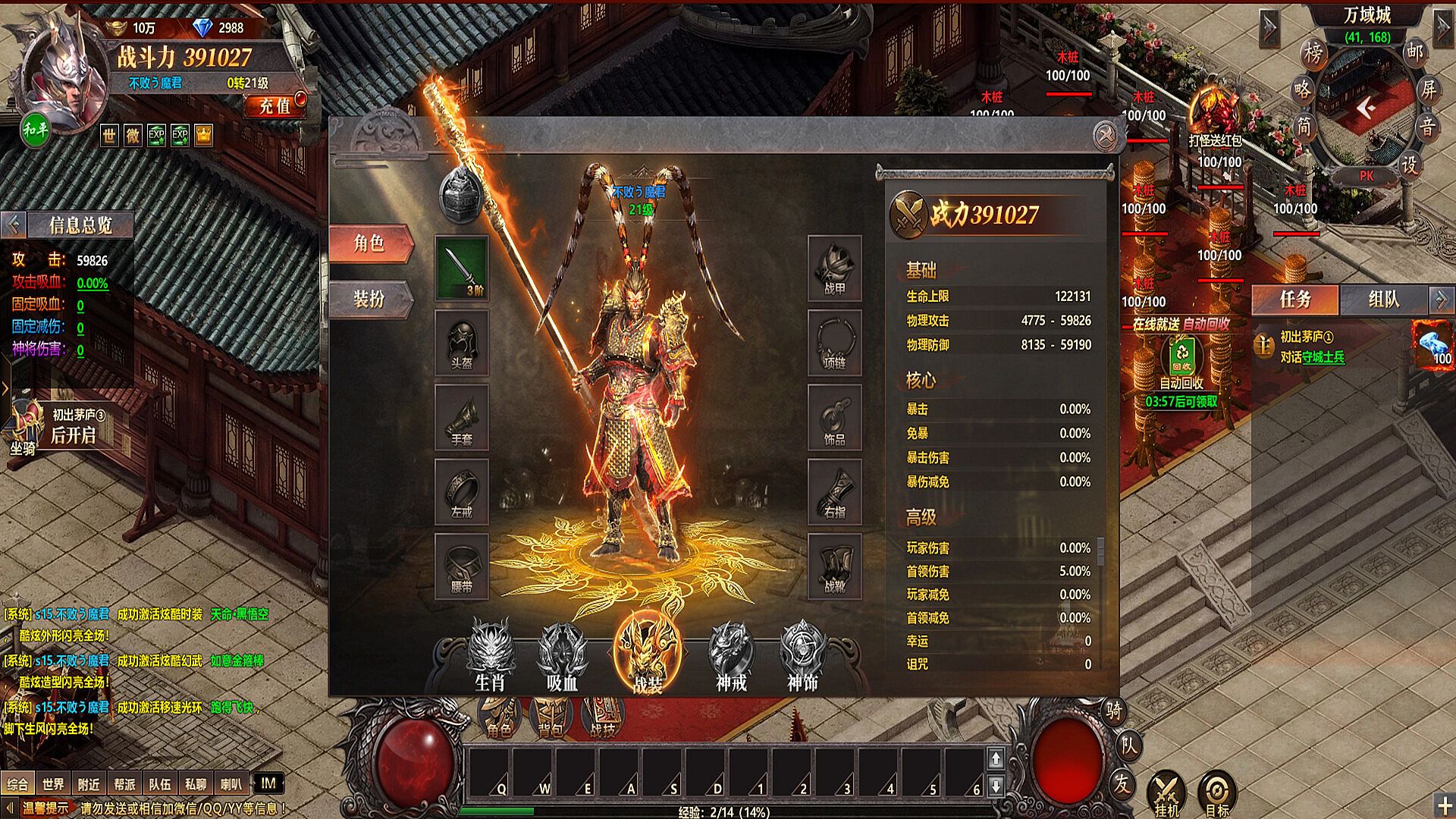装备合成:低级装备+材料→高级战装、生肖装备。
