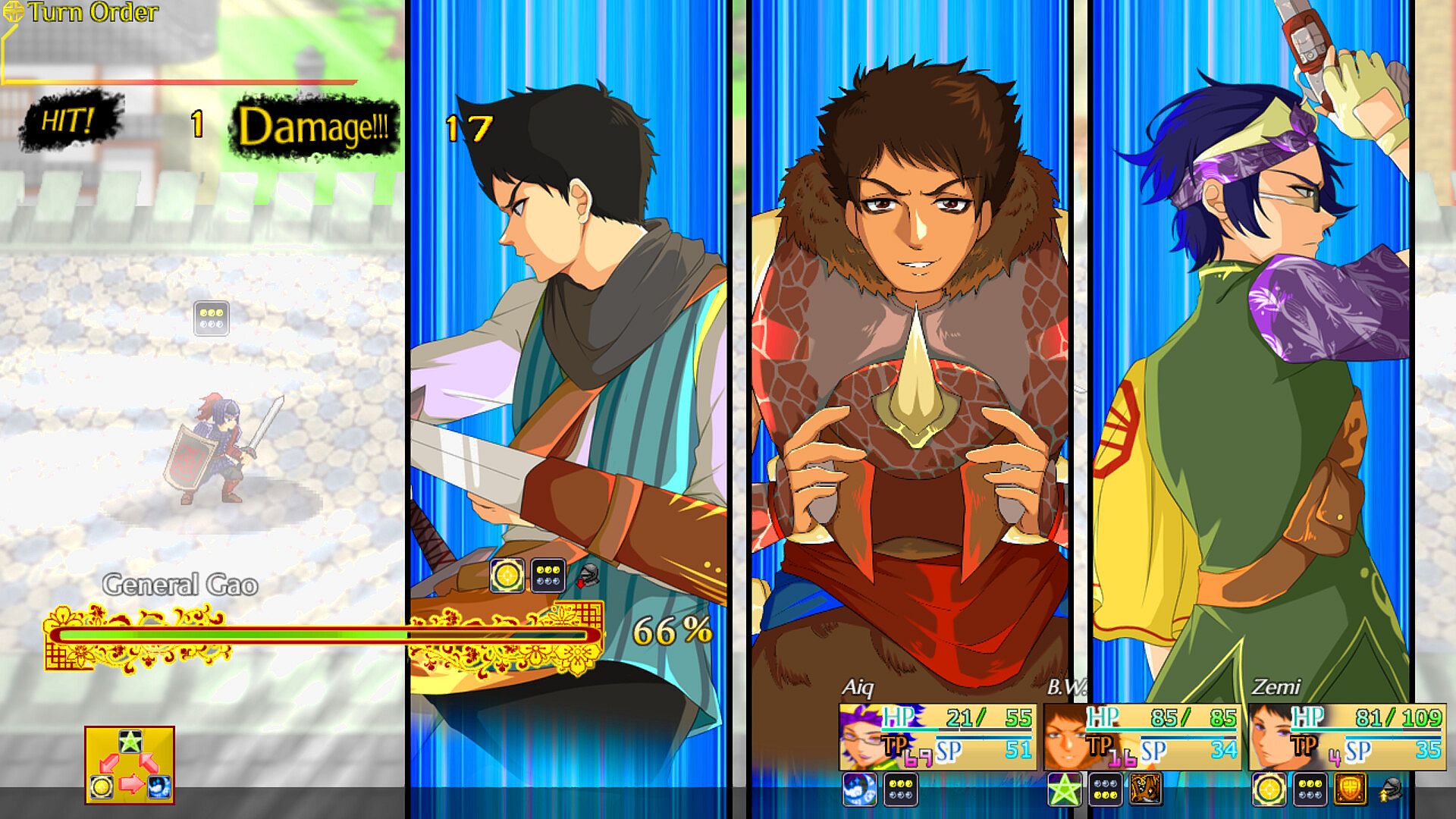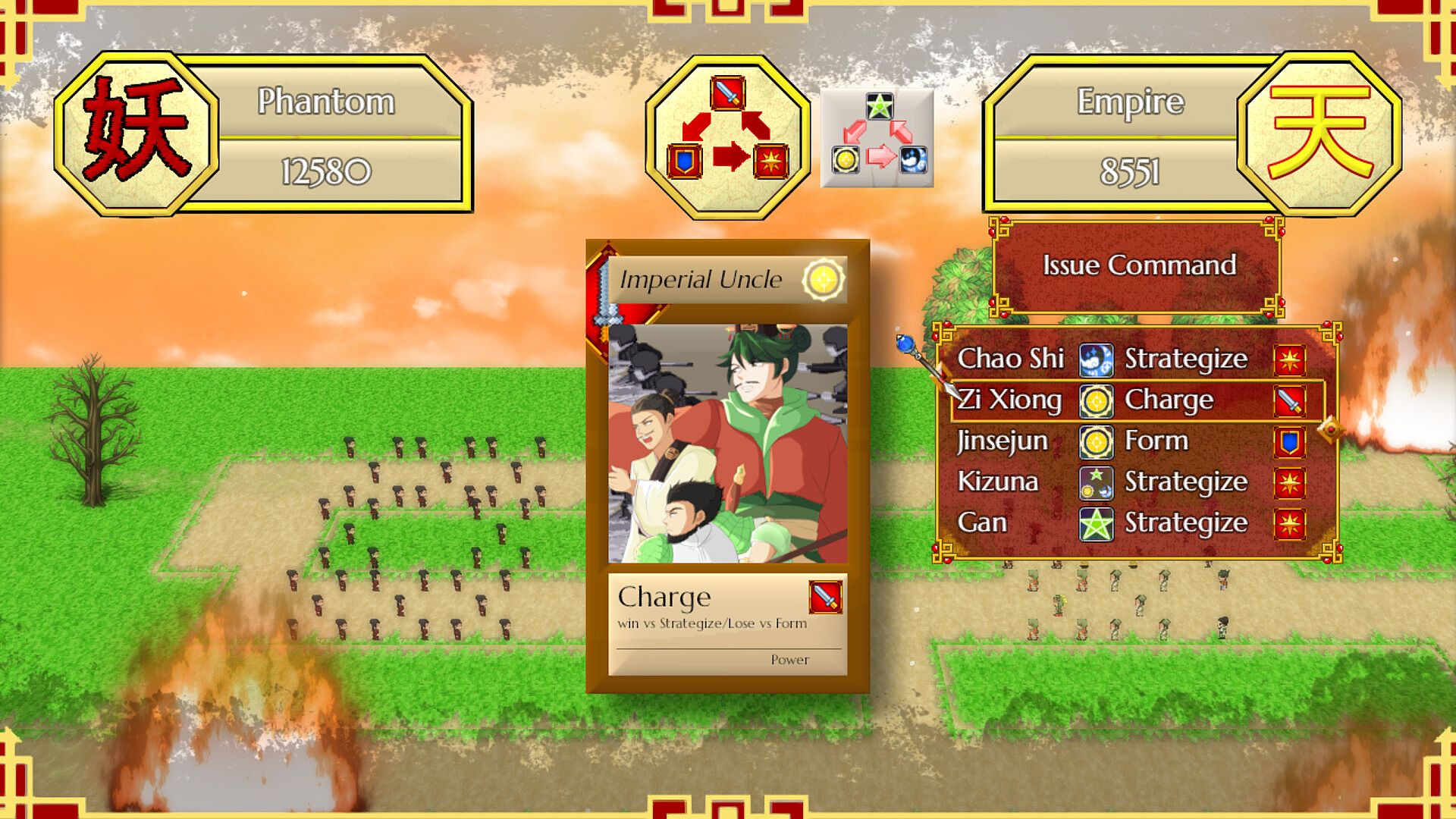 Relive classic turn based RPG set in east Asia inspired fantasy theme. Using charge-turn based system, triangle advantage and row formation battle system to add depth to the battle. Spice up with the addition of War mode where you control an army in an all-out war
