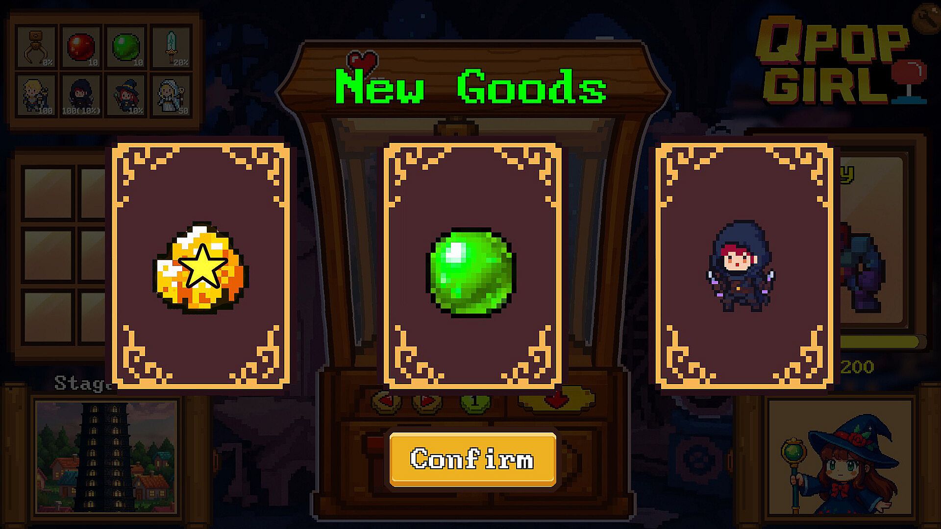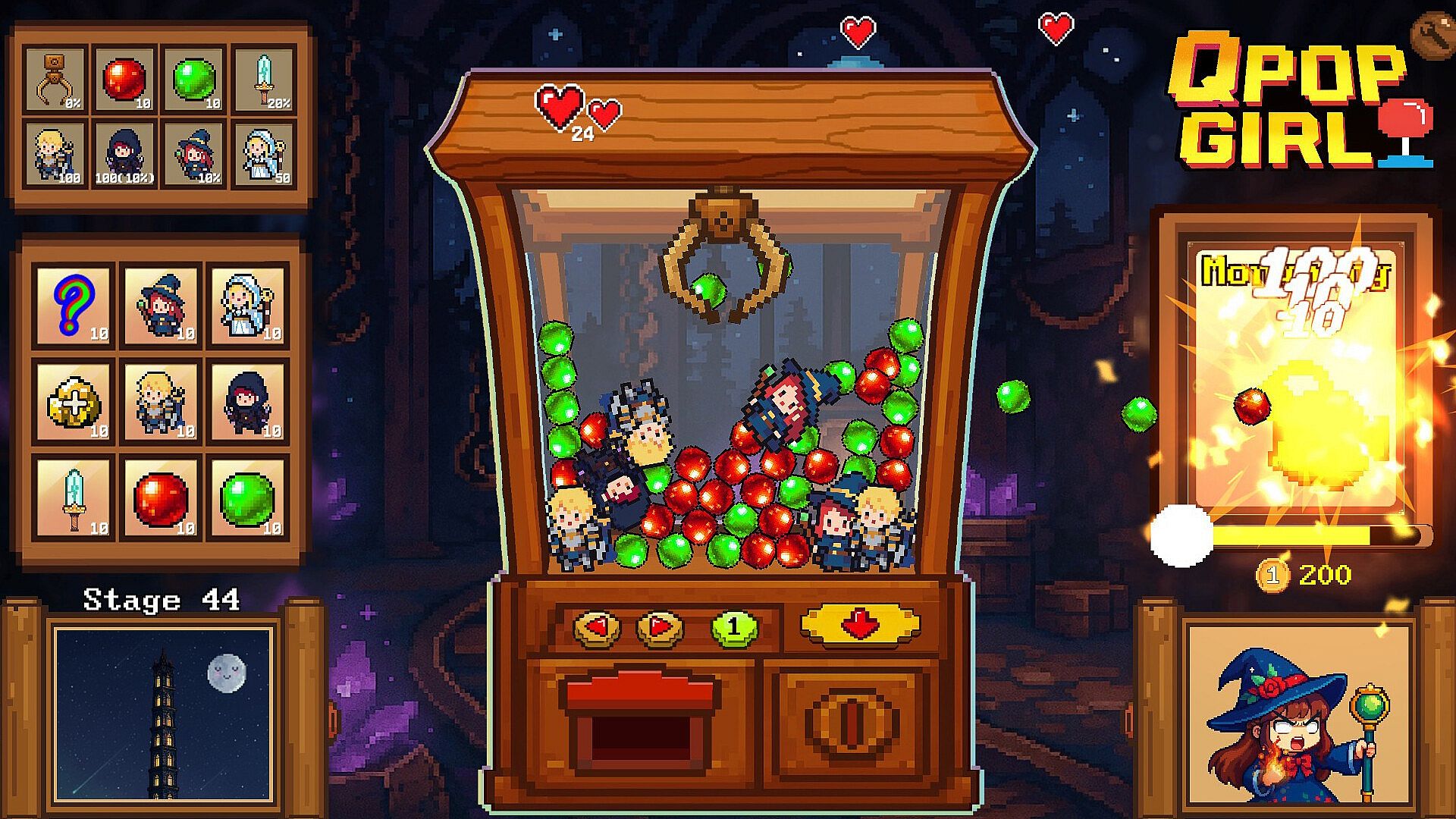 QPopGirl, a completely ordinary idol trainee living in the modern world, ends her practice and heads to her favorite claw-machine arcade. Inside, she finds a strange new gacha machine. The moment she touches its heart-shaped capsule, everything goes dark.