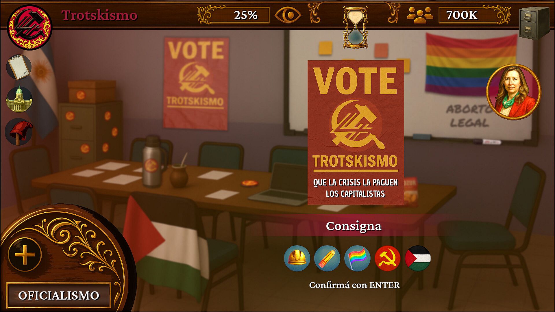 Elegí si comenzás la partida gobernando o intentando llegar al poder desde la oposición.