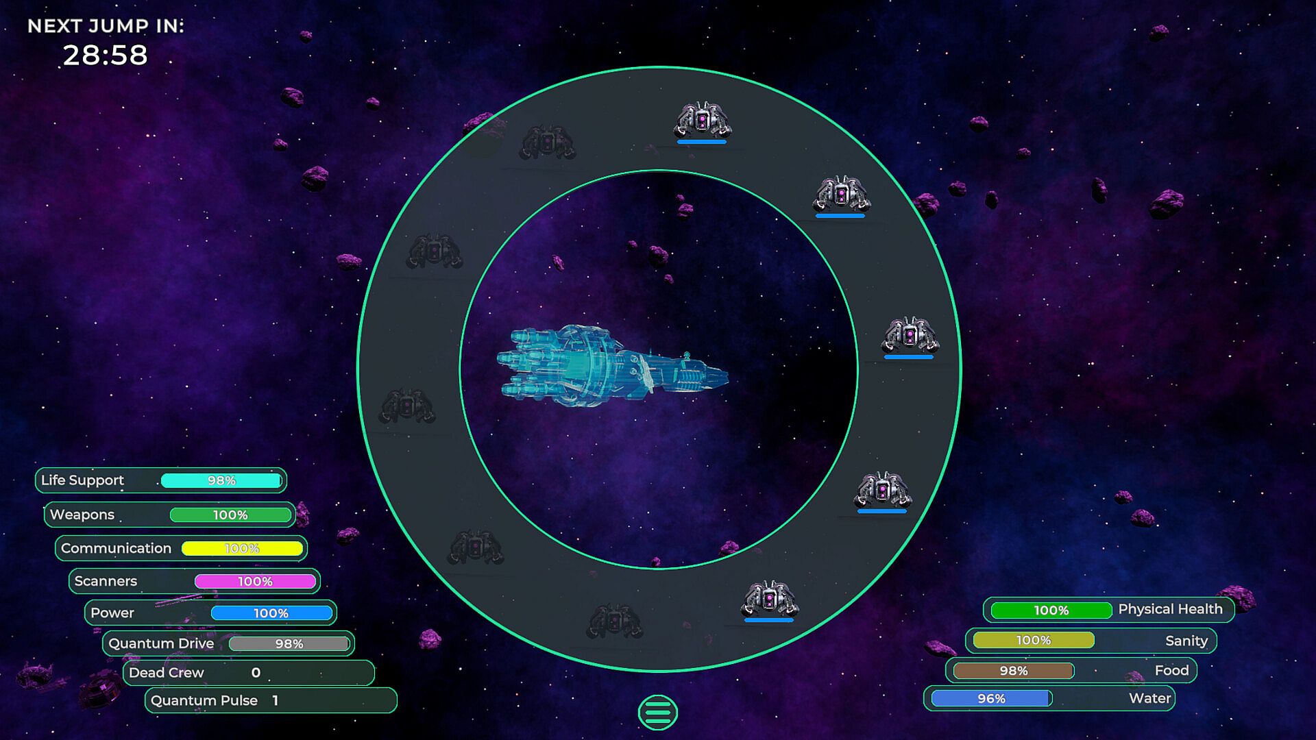• Mine! - Mine space debris and salvage derelict ships at each point of space to gather resources for your drones to fix the various systems of your ship and provide you with the care you need.