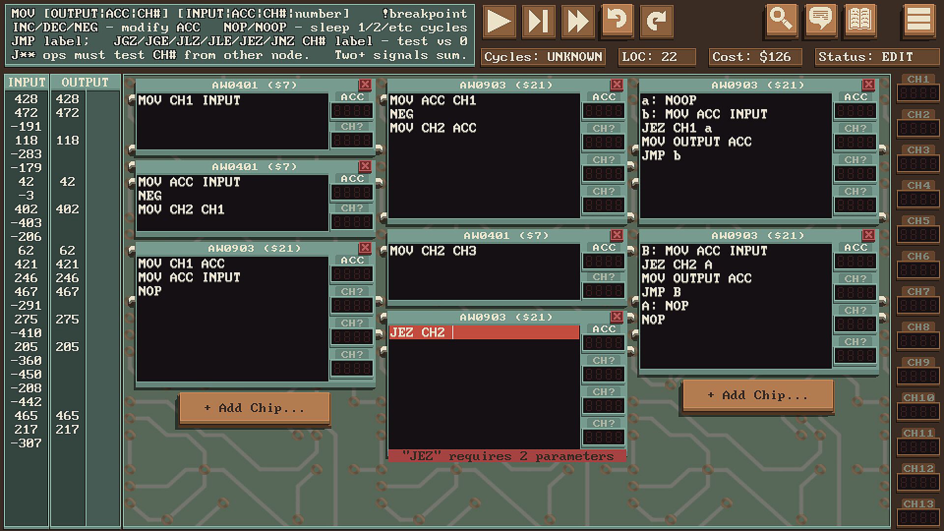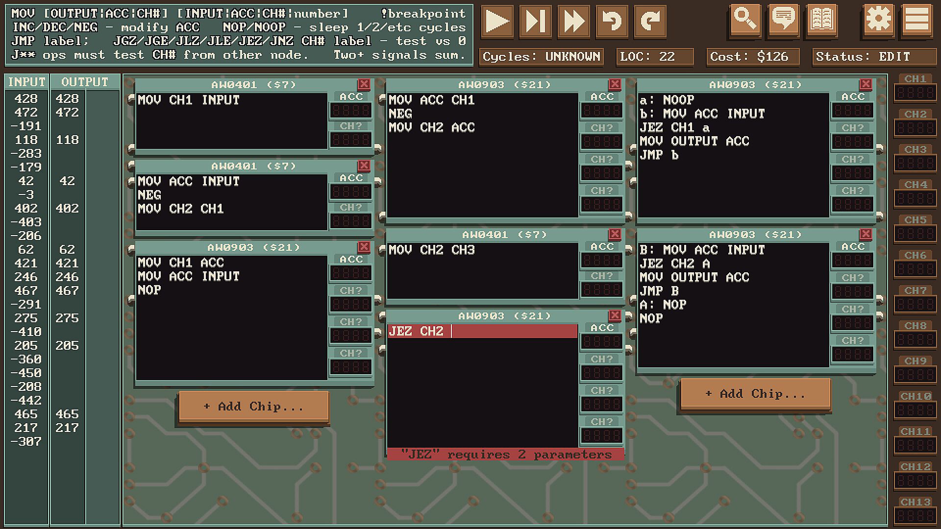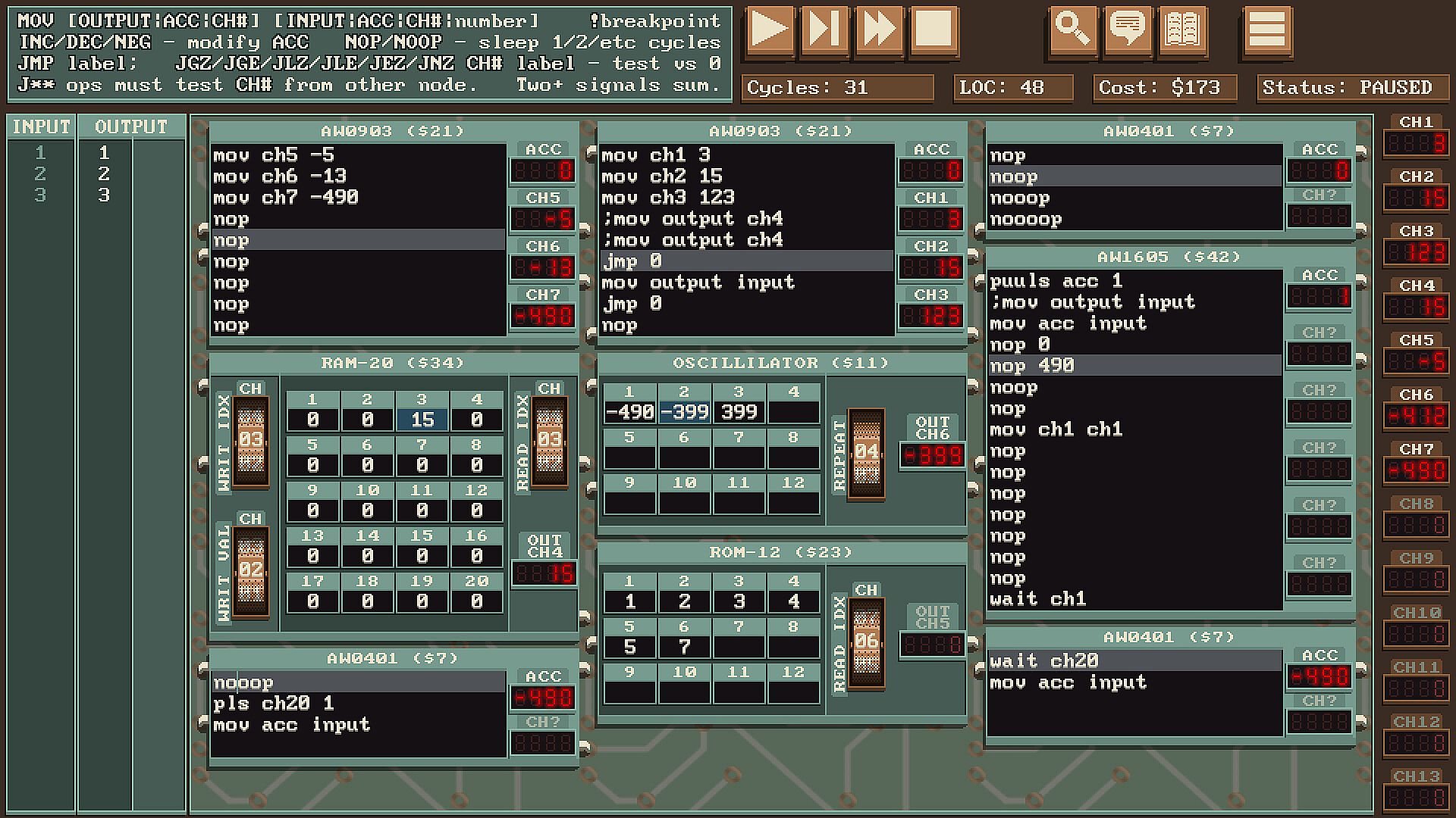 Solve programming puzzles on a fictional computer with radio-based communication and unique limitations. Competitively optimize to compete on leaderboards against friends and the global community.