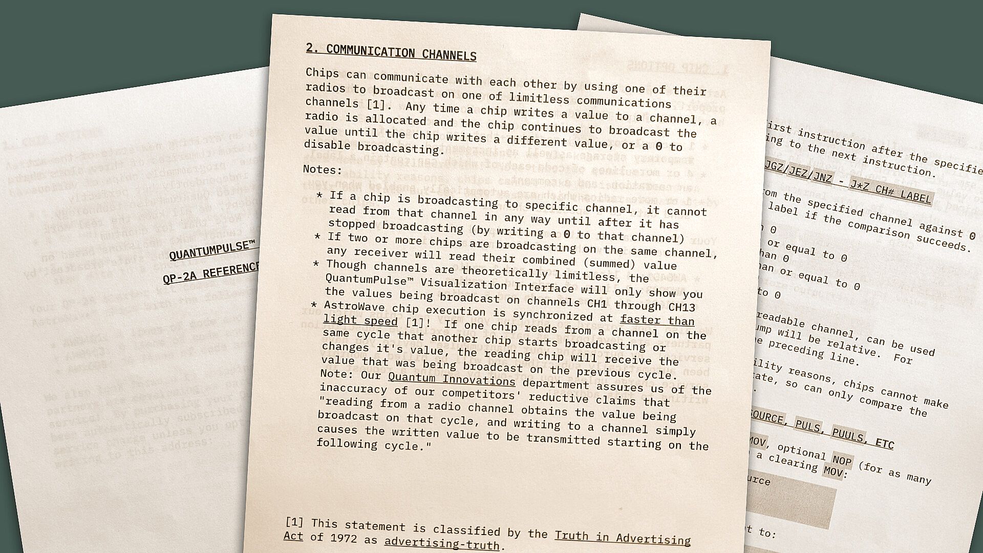From your friends at QuantumPulse Ltd we are excited to introduce the brand new QuantumPulse 2A Professional Computer and Visualization Interface: The most powerful device releasing in '77! With its novel on-chip radios, hi-tech BBS interface, and exclusive hardware addons, the QP-2A is sure to win your heart and mind. Compete against your friends in programming challenges to earn GOLD STARS! And ACT FAST: The first to complete the certification course will receive a complimentary unopened pack of traditional Kostovian playing cards.