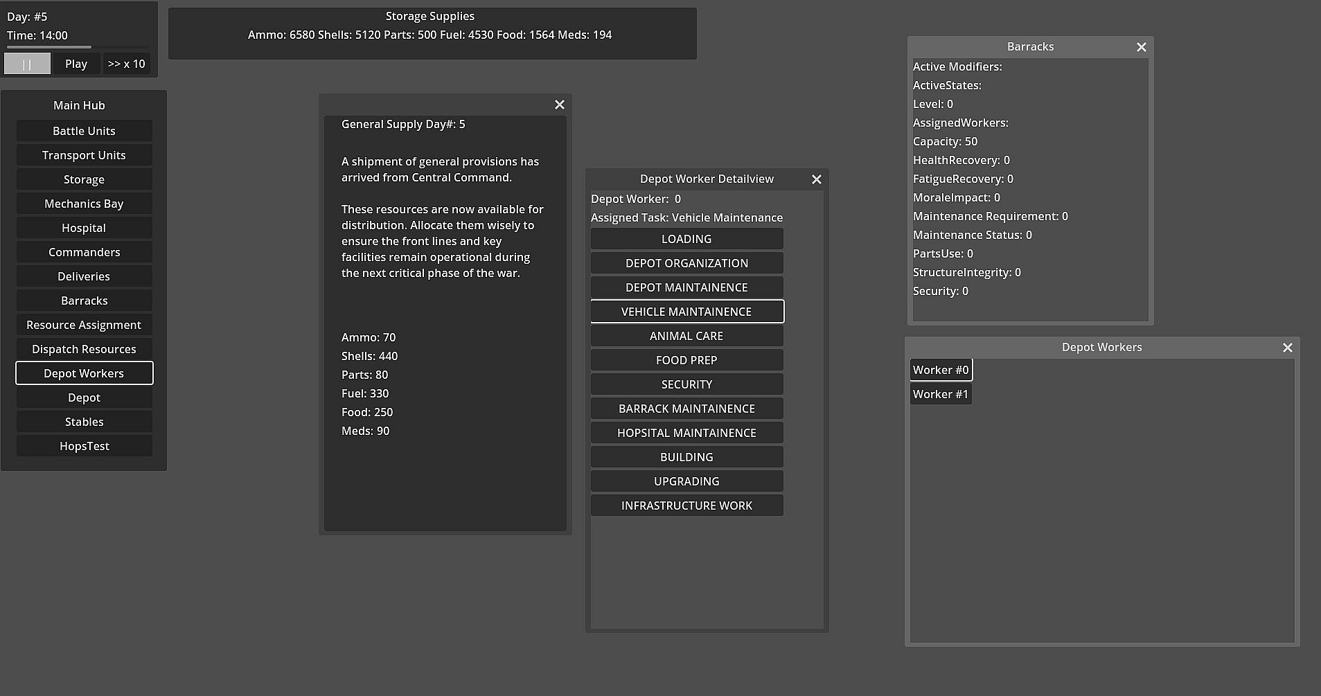 Every resource is precious, and each number tells a story. Supplies aren’t just stockpiles; they’re lifelines. Your units rely on diverse resources—ammo, fuel, medical supplies, spare parts, and food—each essential to survival and mission success. Different units have specific needs, and even your transport vehicles demand maintenance and careful planning. Building stable supply lines, setting up reliable storage, and ensuring high morale among your logistics crew all impact whether supplies arrive intact and on time. In this chaotic environment, even a small lapse—a missed part, an empty tank—can spell disaster.