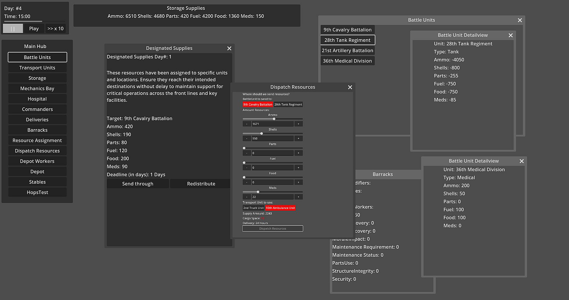 As Quartermaster, every decision you make will shape the battlefield from behind the lines. Supplies are limited, and needs are endless. The orders you receive may contradict each other, with commanders and units making urgent, competing demands. You’ll be tasked with choosing who gets the precious fuel and ammunition—knowing full well that one battalion’s gain may mean another’s struggle, or worse, annihilation. Unexpected challenges will arise: supply lines cut by sabotage, units left crippled by sudden attacks, roads lost to mud, and soldiers struck by sickness or injury. In the worst moments, you may have to ration supplies between the injured, the battle-ready, and even the civilians fleeing the front. Each choice ripples outward, affecting morale, survival, and the trust placed in your leadership. The stats you oversee—fuel, parts, morale, health—are not mere numbers; they are lives, and the decisions must be made quickly, as delays can cost everything. Every second counts, and hesitation can mean disaster—the fate of each unit, each sector, depends on how quickly and decisively you act.