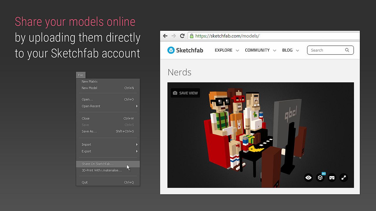 • Upload to Sketchfab to share your models