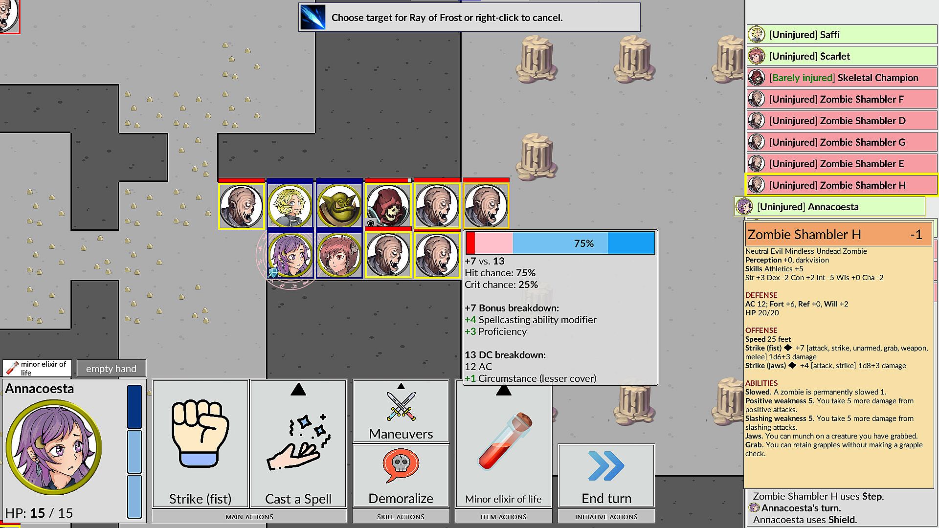 Each turn, you get three actions to spend on moving, attacking, casting spells, taking combat maneuvers, drinking potions and defensive or other actions.