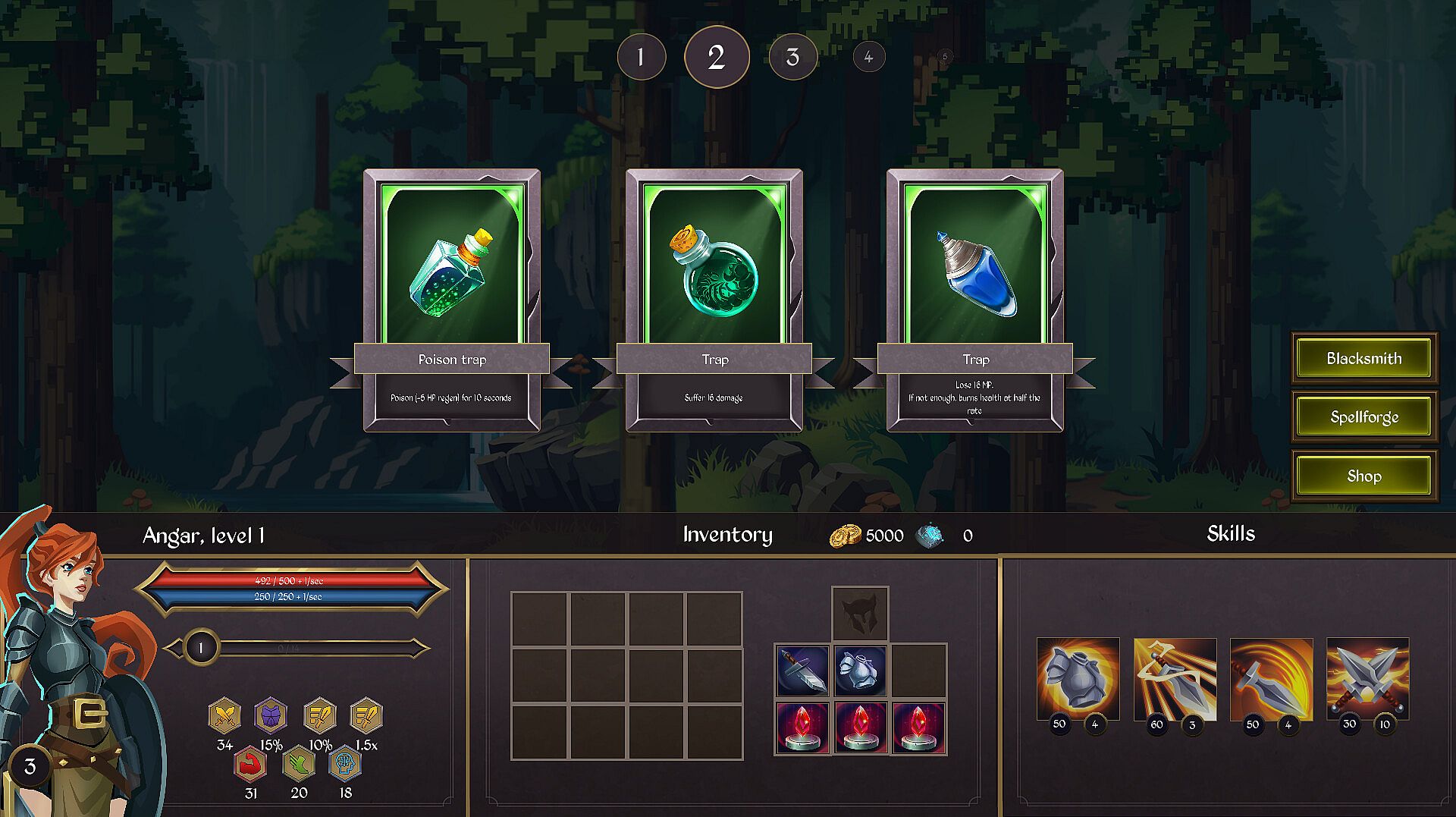Upgrade your spells to increase their power, or you can upgrade them to focus on the key abilities to reach further in the dungeon! Defensive or offensive? More debuffs? Better debuffs? More buffes? Healing? Try out multiple builds and reach further in the dungeon.