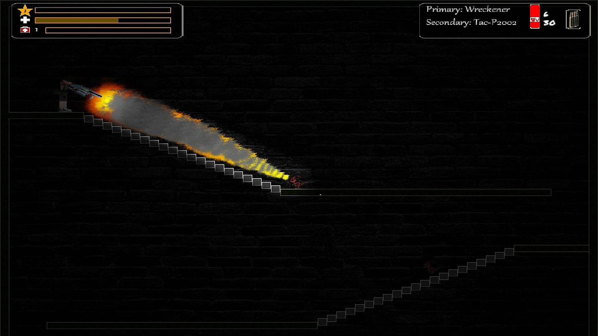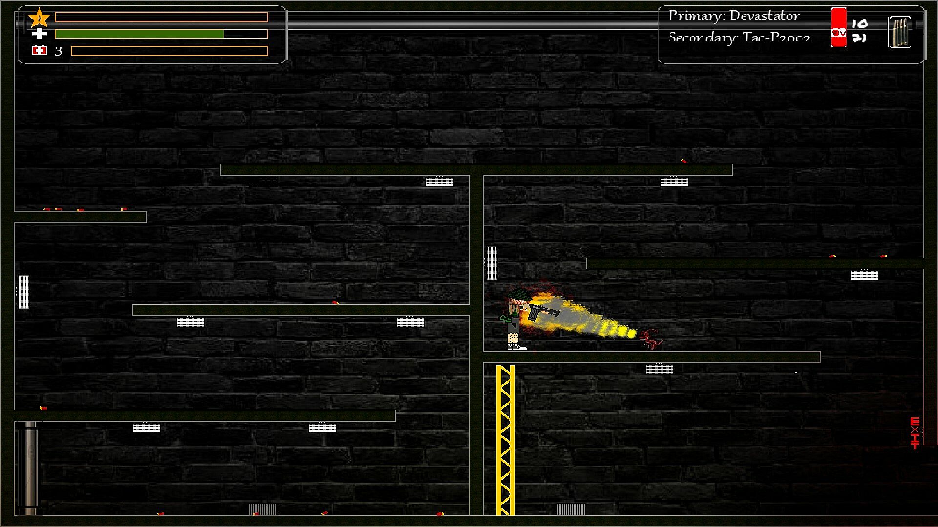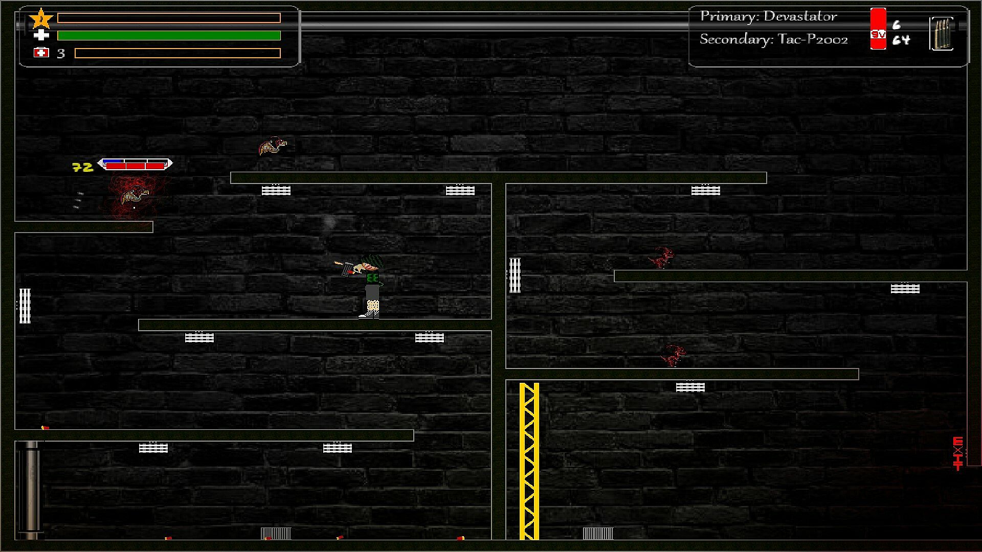 In an unknown facility you are trapped in this platform shooter game. That are doing illegal tests on you. Things go awry when the head of the facility began creating creatures and releasing them on the scientists and test subjects. The attacks grew in number until the facility was overrun. Now you must fight your way out to gain your freedom before the creatures kill you as well. Do you have the will power and the strength to save the world from the unknown?