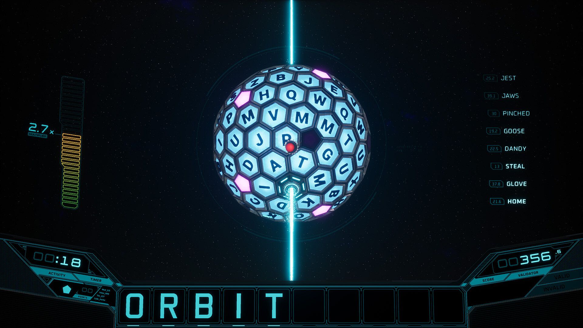 1. Rotate around the Core to land your bouncer on the desired letter-tile.