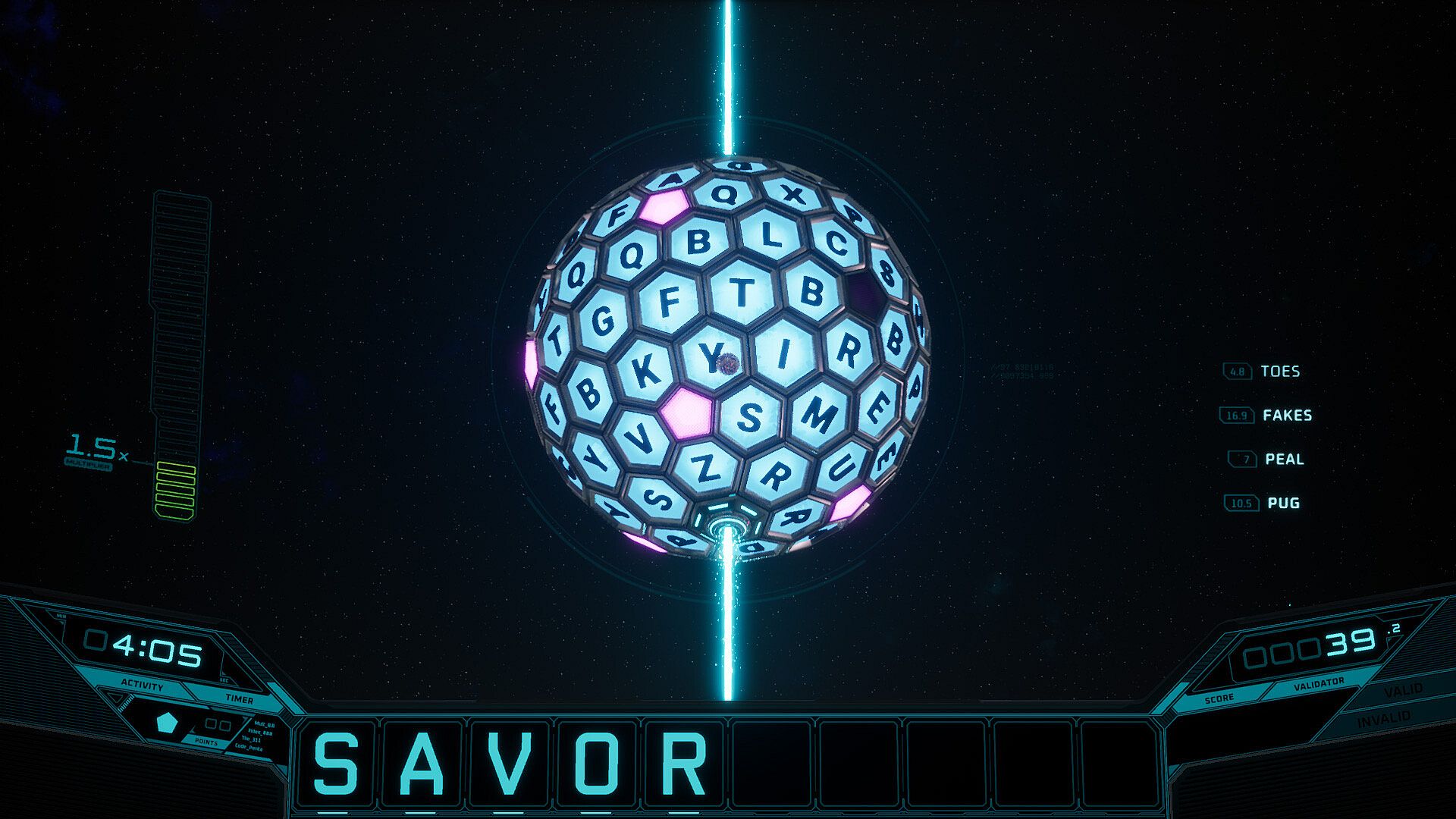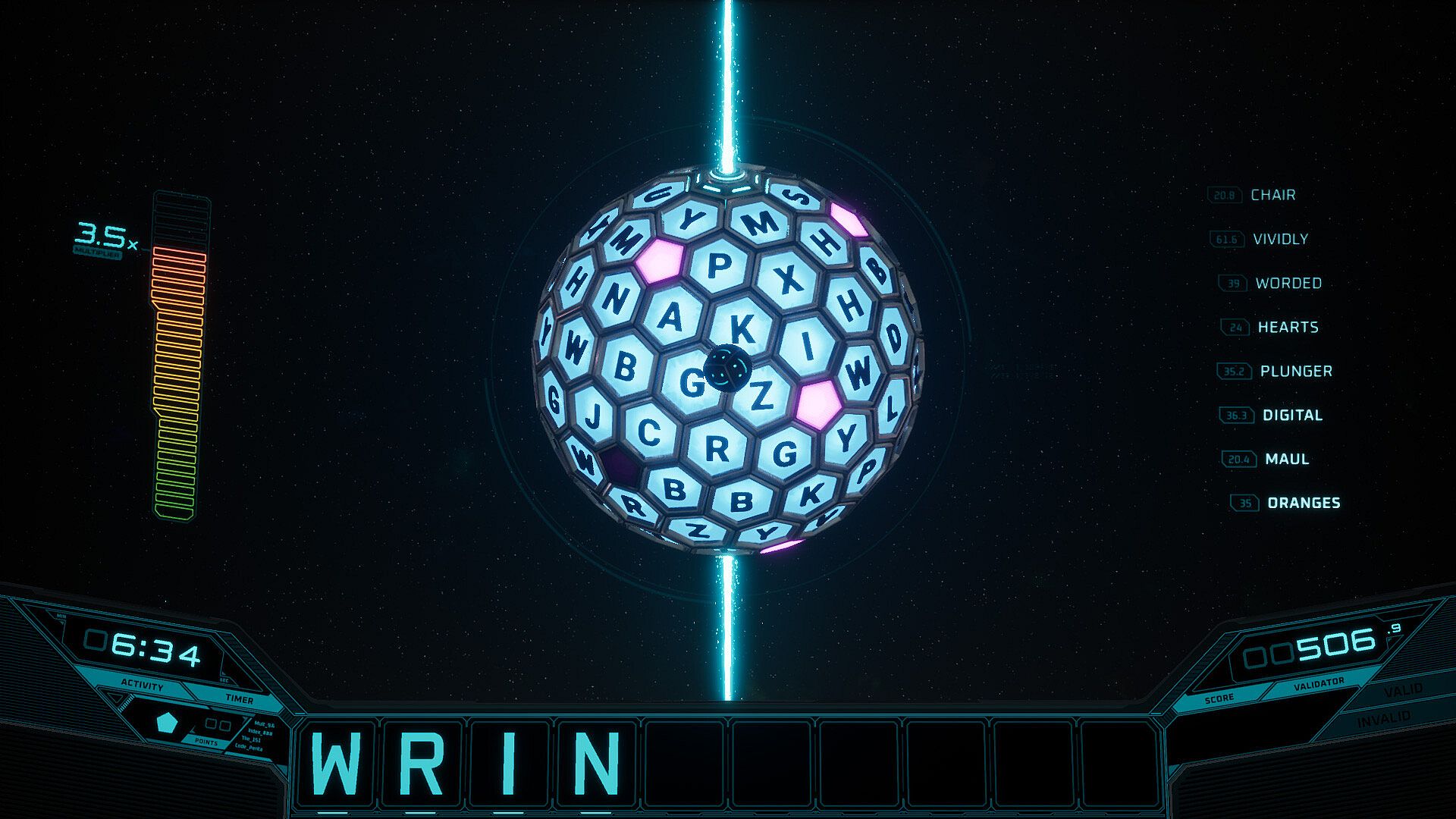 3. Submitting words clears your inventory and calculates bonus points.