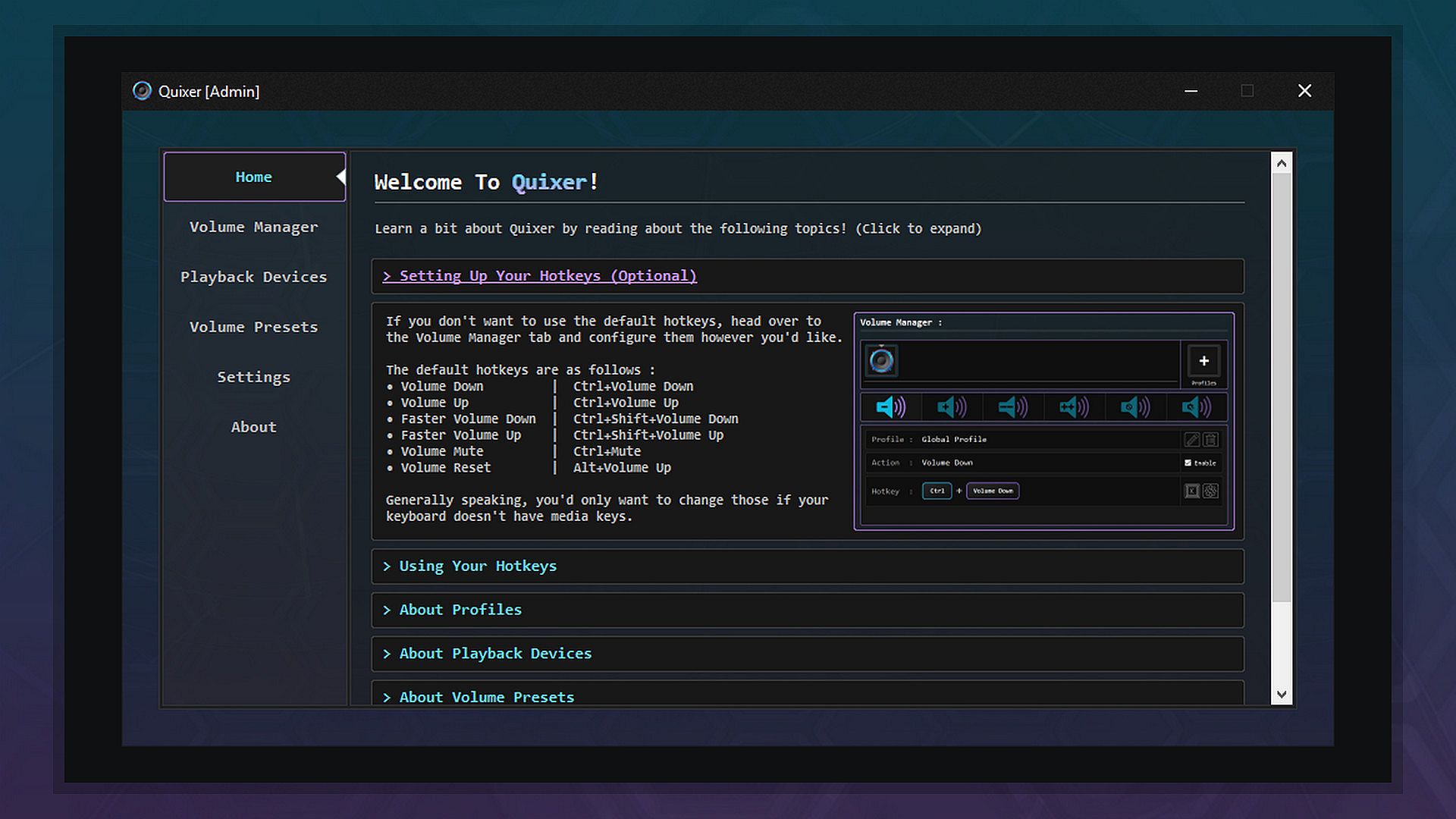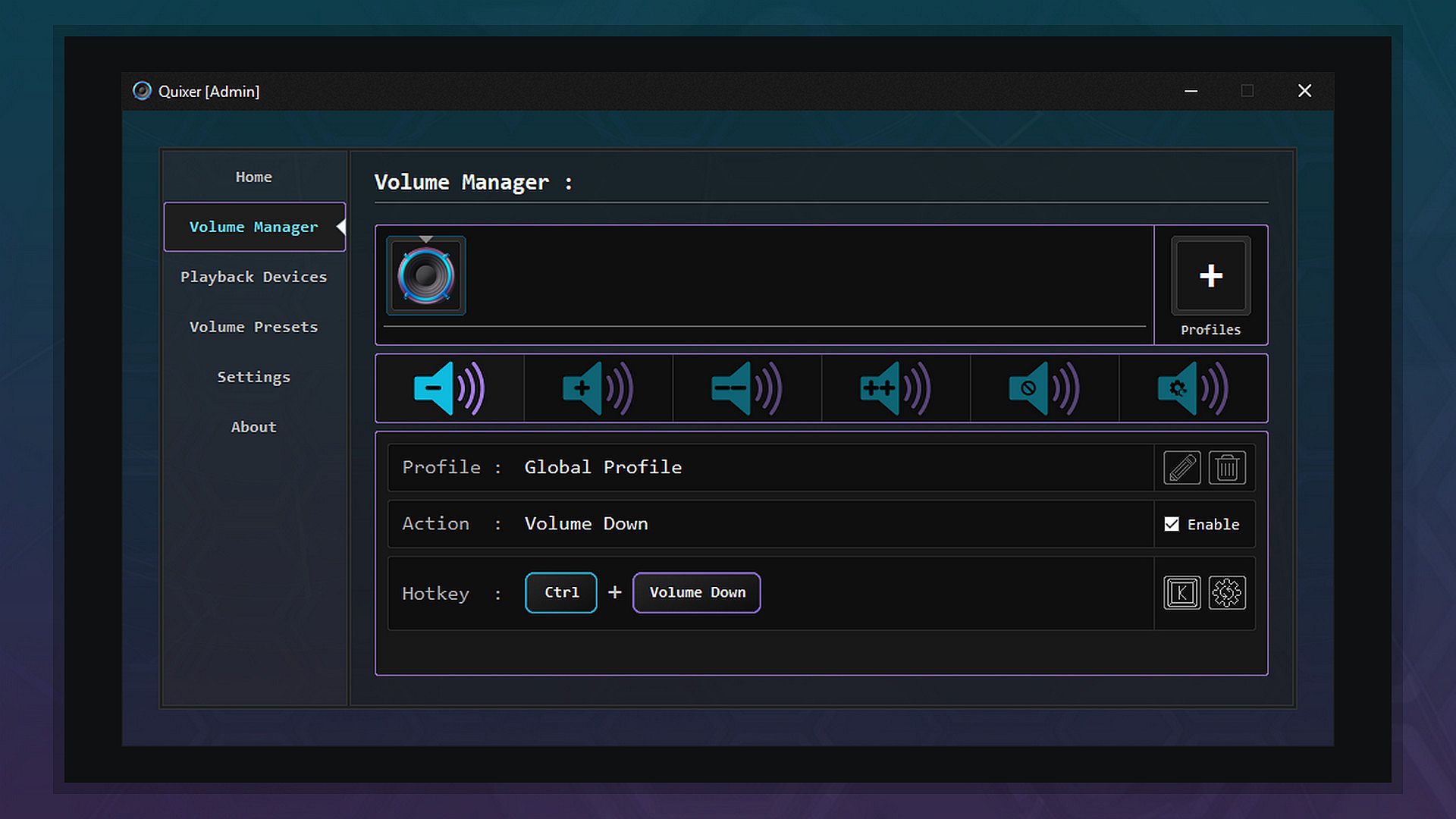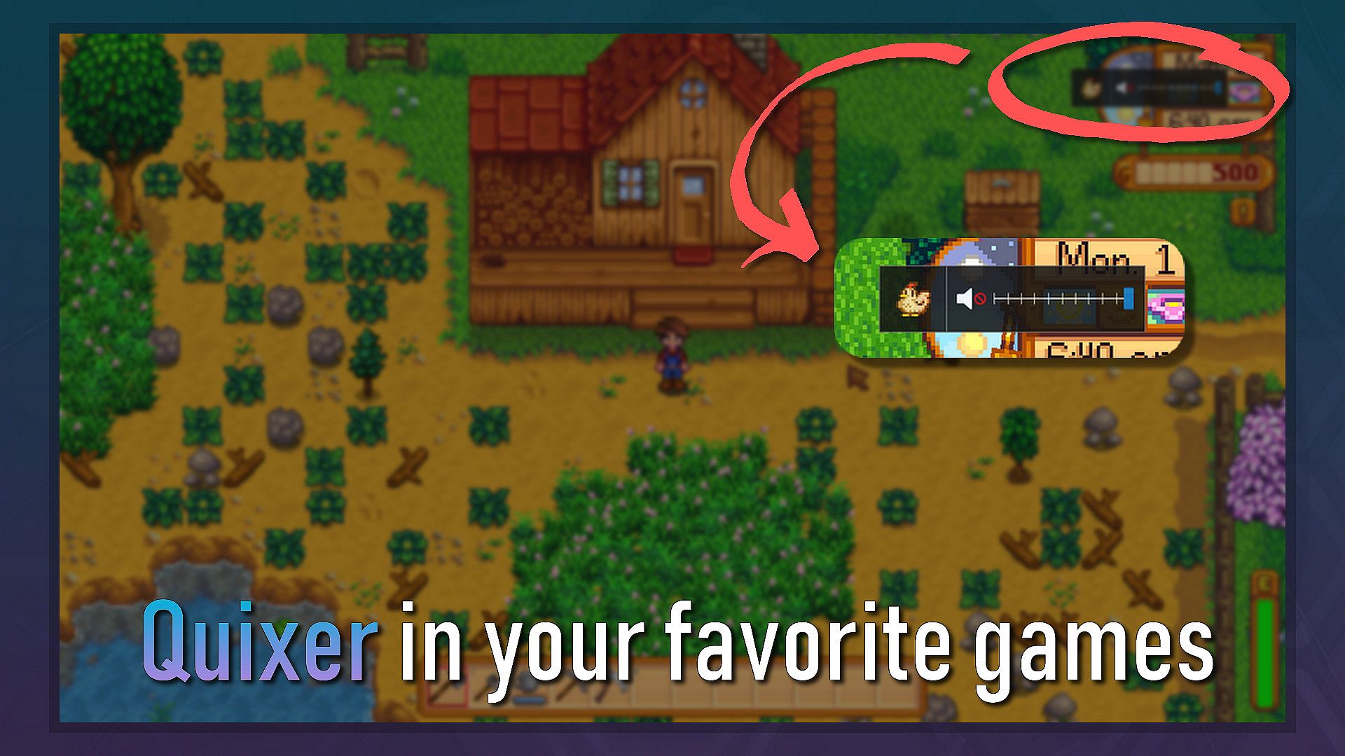 Quixer will let you seamlessly adjust any game's or application's volume with the press of a few keys. You can decrease, increase and mute the volume of focused or unfocused windows individually.