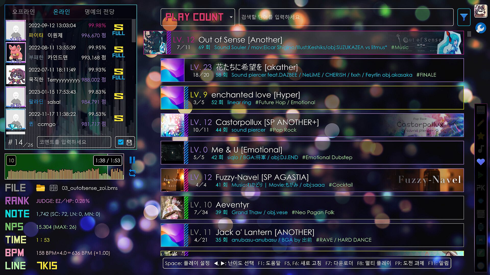 합법적인 방법으로 BMS, BMSON 노트 파일을 다운로드 받을 수 있는 다운로더가 내장되어 있습니다. 더 이상 BMS는 입문하기 어렵지 않습니다.