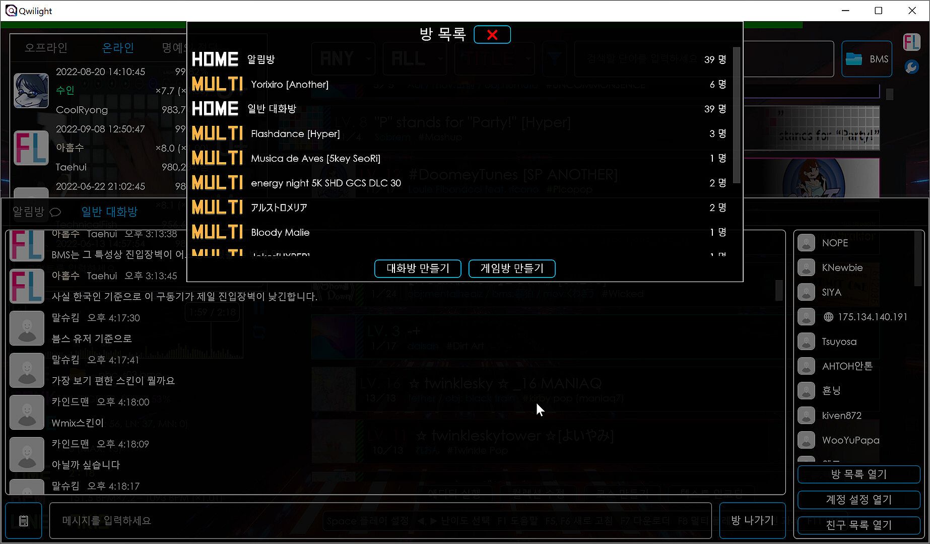 대화방과 멀티방을 생성하고 다른 사람과 대화하거나 멀티 플레이를 즐길 수 있습니다.