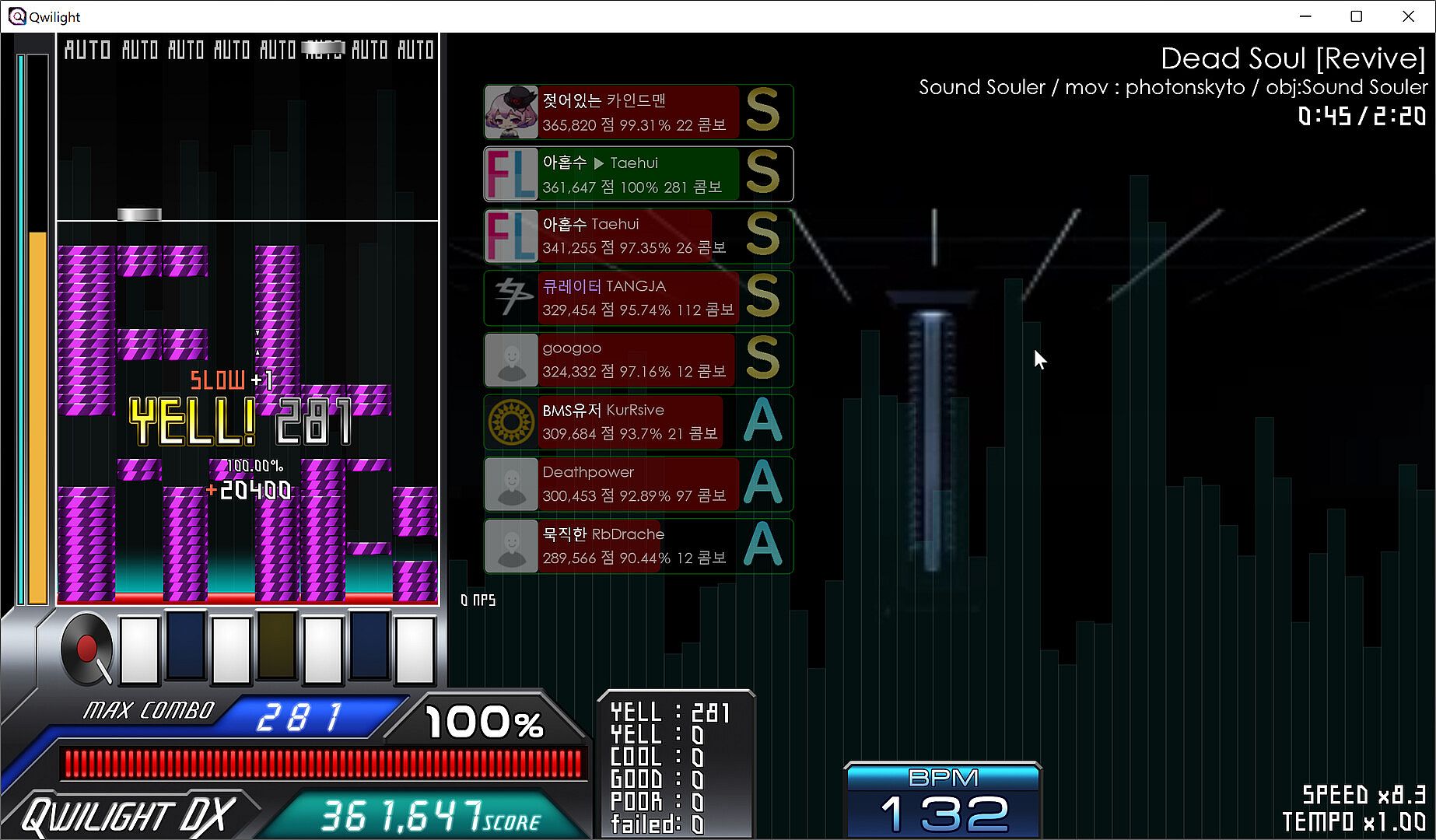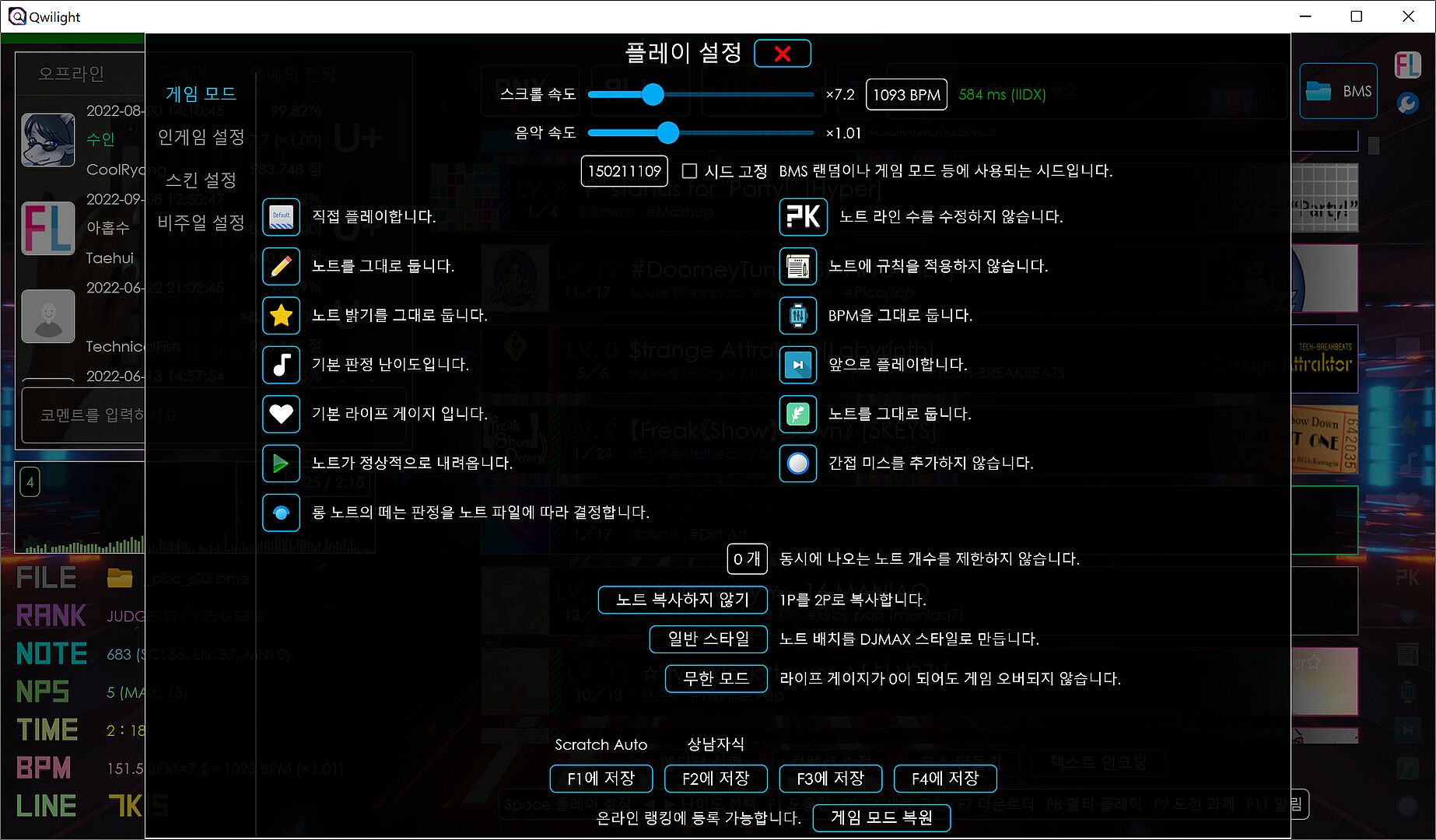 Qwilight은 현존하는 리듬 게임 중 가장 많은 기능을 가진 무료 BMS, BMSON 구동기입니다.