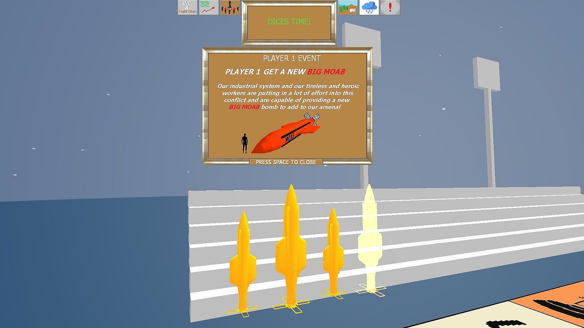6) Simulated weather with winds, cloud cover intensity, and the intensity of possible rain (weak, medium, hard) that will affect the characteristics of units on the battlefield; especially aerial vehicles, whether they are jets, helicopters, drones, or airborne munitions.