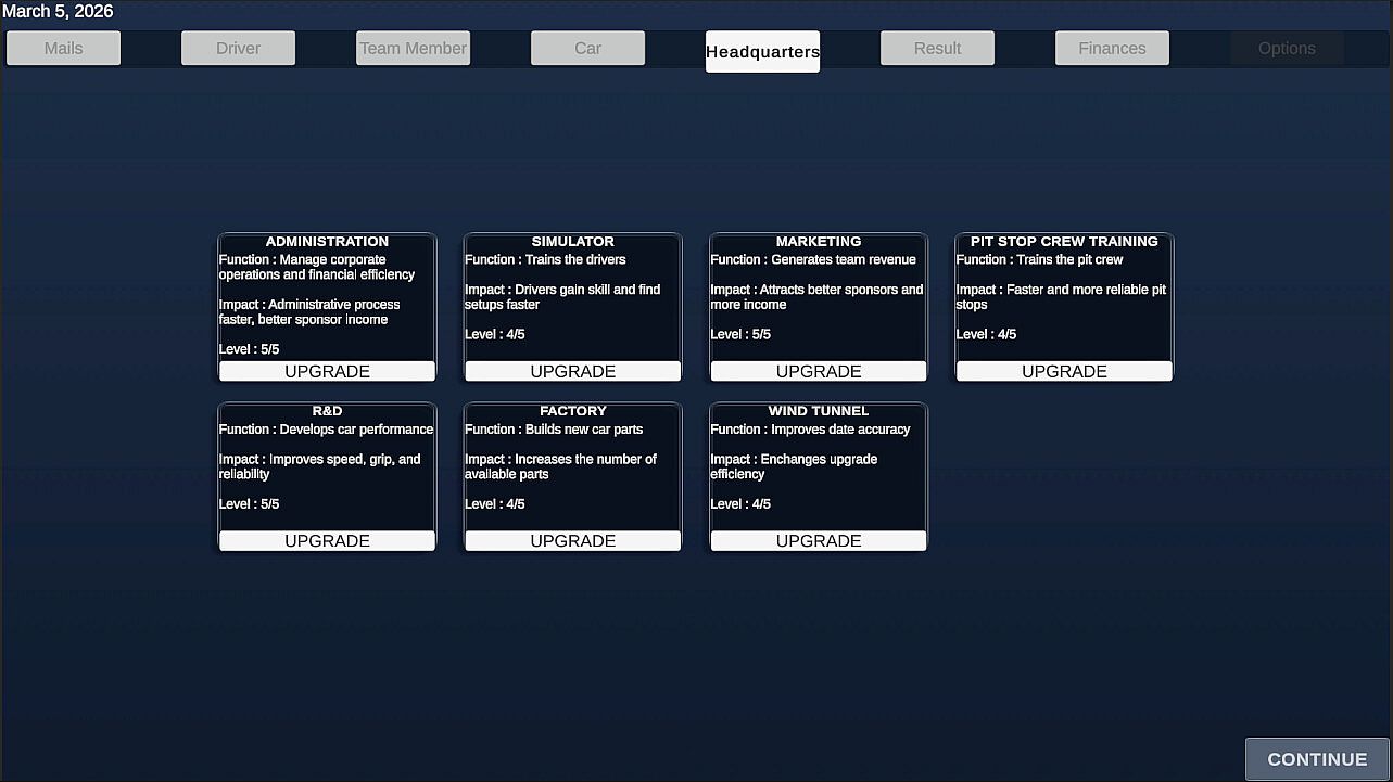 Racing Manager is a motorsport management and strategy game where you take control of a racing team as its Team Principal. Build the perfect staff, develop your car, manage your finances, and make the key decisions that will influence every race weekend.