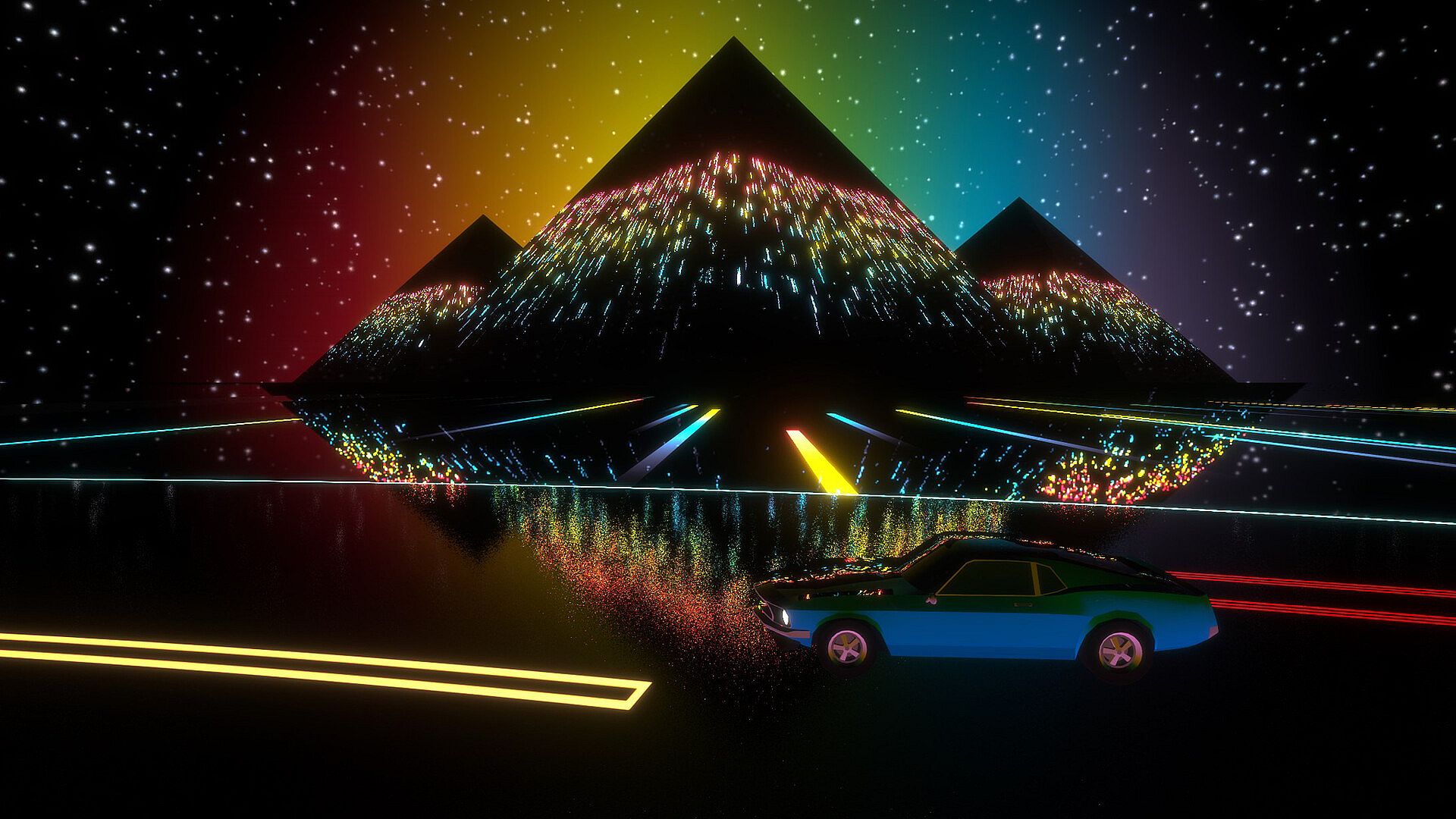 Navigate through abstract mindscapes inspired by psychedelic and retro-futuristic aesthetics of the 1980s. From synthwave to deep space and cyberpunk, experience a unique music-driven journey.