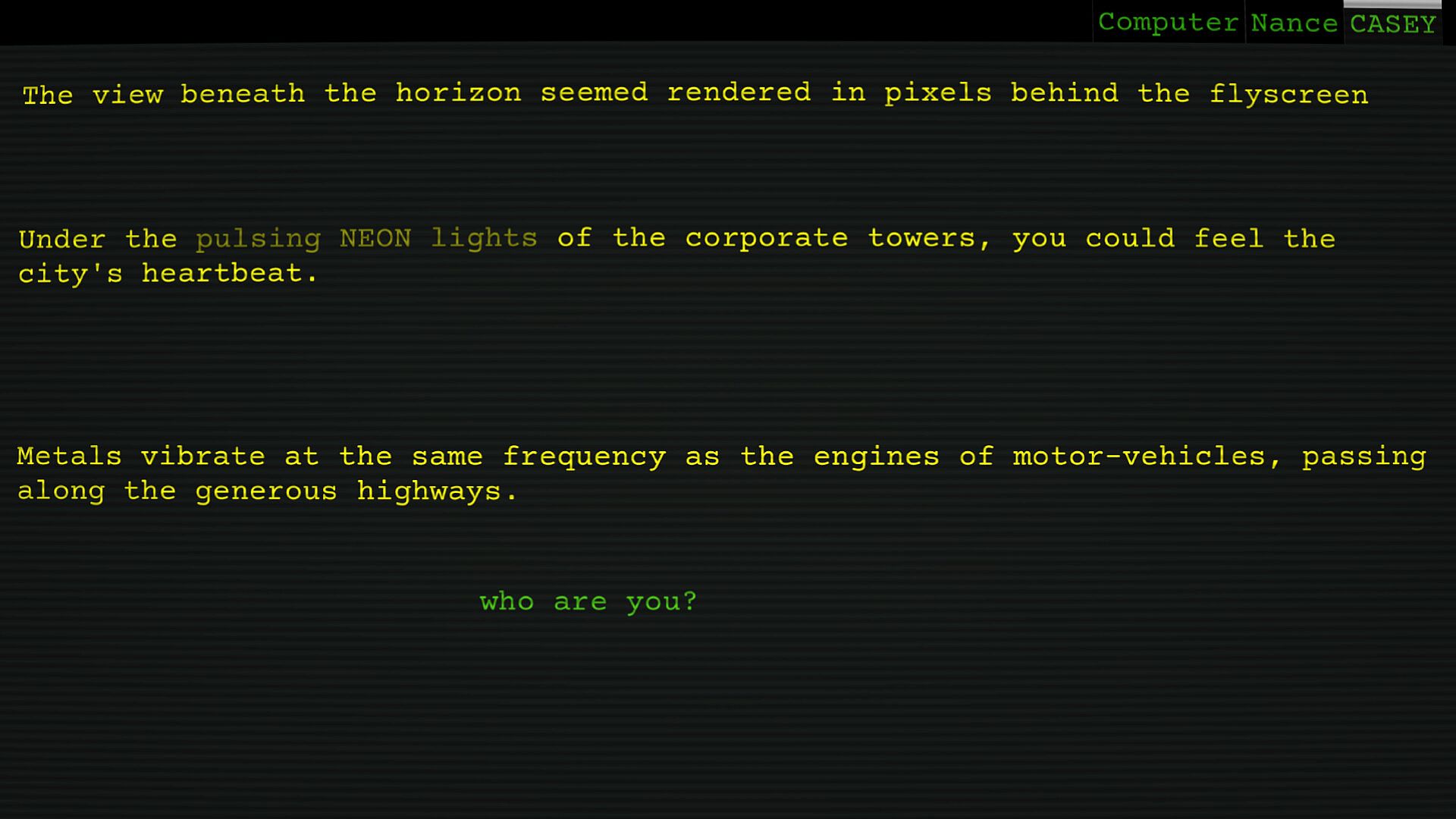 Dive deep inside the long-lost communication network and explore the wideband. There are weird people to talk and various mysteries to be solved inside your terminal. Hear static whispers. Decipher frequencies. Piece together the deeper story inside the noise.