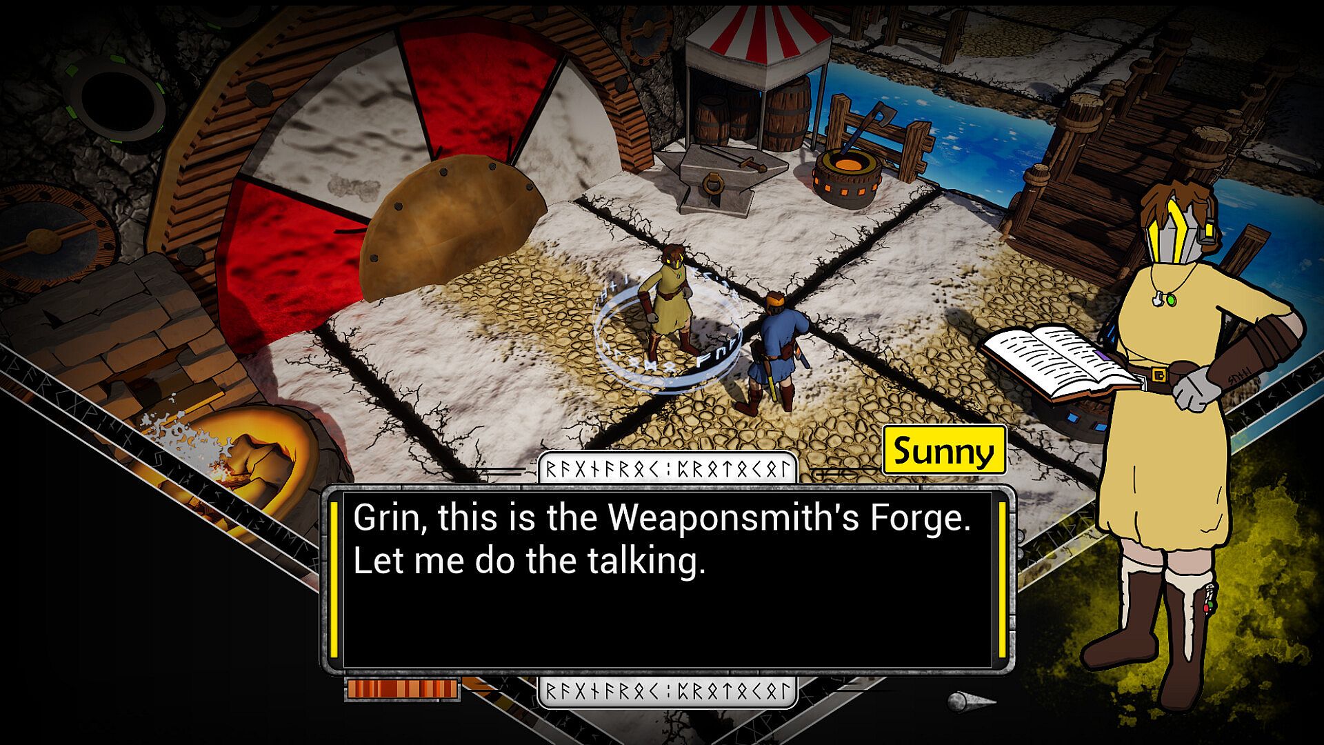 In this isometric adventure game, you play as Grin, a warrior taking refuge in a quiet mountain town. You begin your adventure with two axes, one blue and one yellow. These will introduce you to the color-matching combat of Ragnarök Protocol.