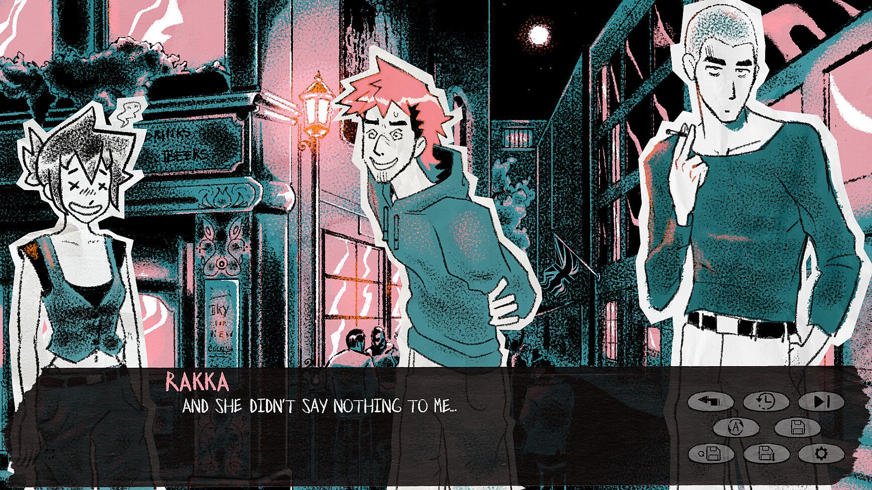 London, 1993. Rakka works as a disillusioned office employee, navigating the monotony of corporate life. When she stumbles upon a mysterious code hidden in a care package from her job, her world begins to quickly unravel. Alongside her roommates—Sascha, Björn, and Kev—Rakka's life takes a sharp turn from mundane to mayhem, facing unsettling phone calls, mysterious black cars, and a break-in. Are they being watched? Entwined in a dangerous conspiracy, the roommates weigh their options, and when Björn reveals he’s figured out the code, a decision is made. As you guide Rakka and her friends through this narrative, you'll uncover not just the answers to the mystery, but also explore the depths of their friendships. How far will they go for each other? And just who’s on the other end of the line? Follow these friends down their dead-end lives as they piece it all together, and they might just make it out the other side, with any luck.