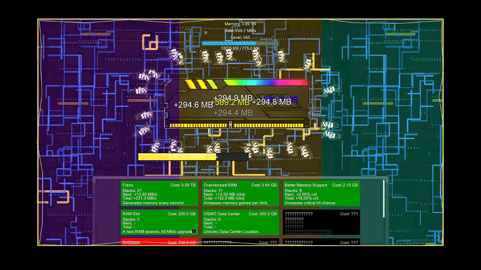 Throughout the game you will upgrade your gear and recruit "frens" to help you collect more memory and get to the bottom of RAM Crisis. All in order to take down [REDACTED] and bring balance to the prices. I hope you enjoy your time with my project :D
