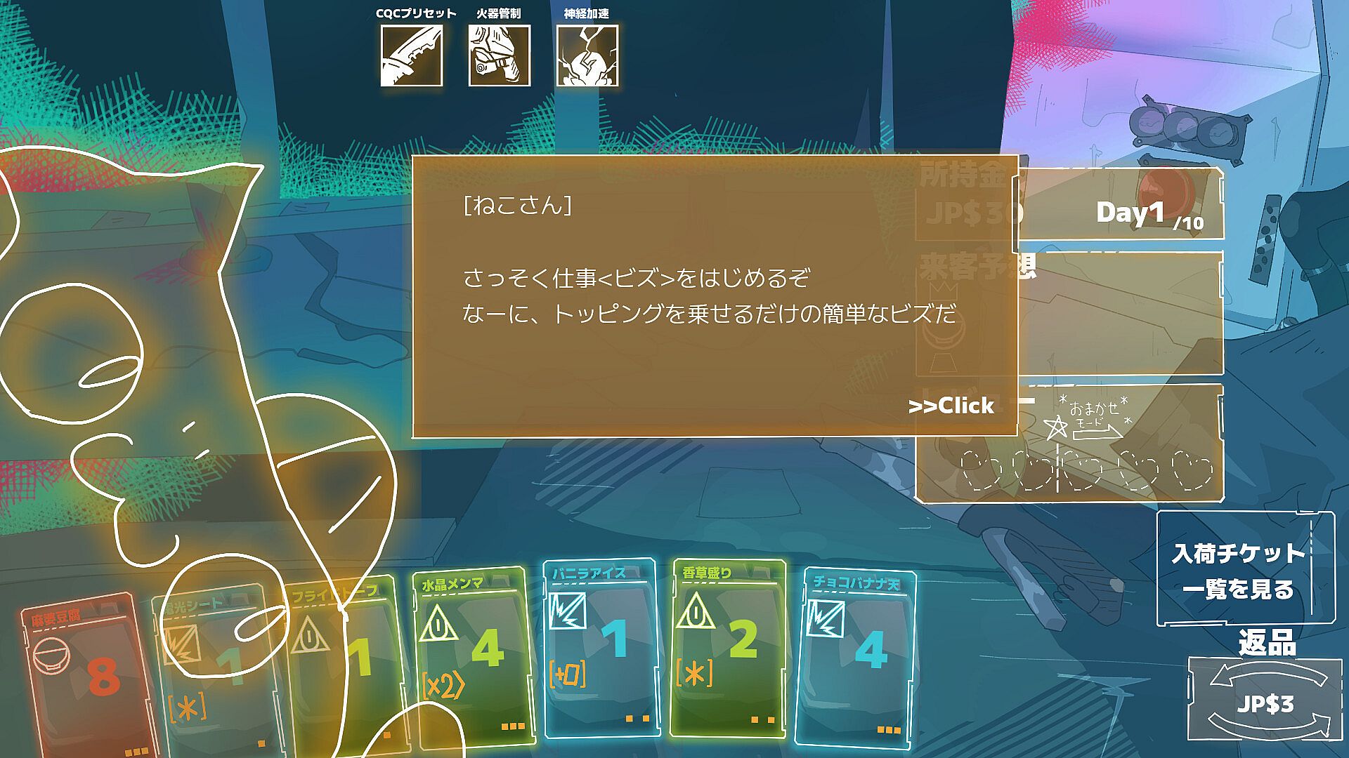 A roguelite card game where you run a ramen stall in a cyberpunk city.