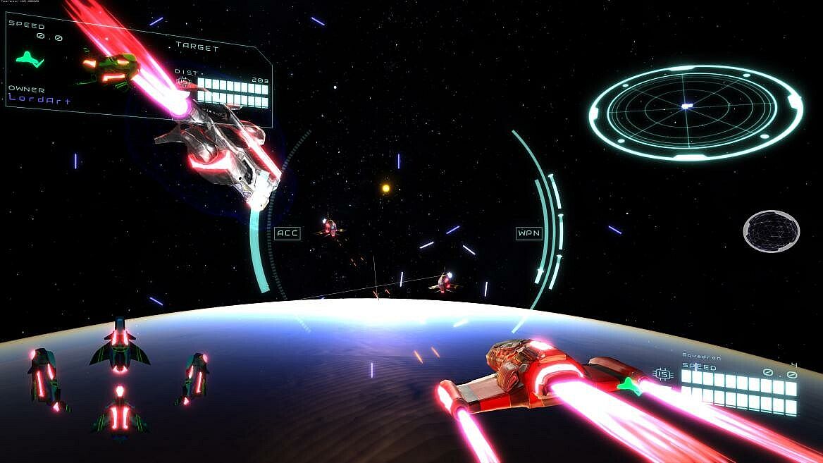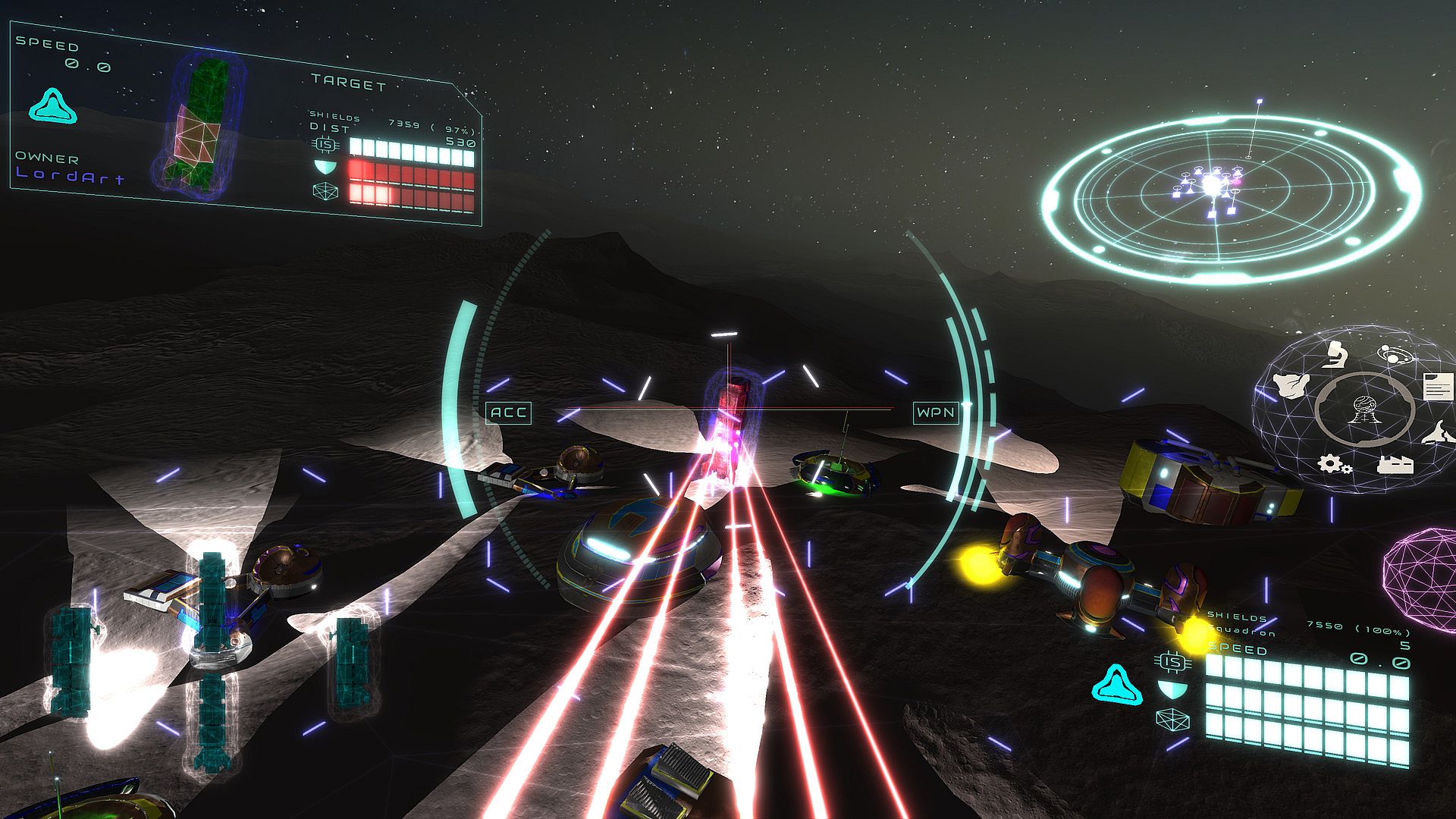 Order your fleets into engagements with enemy forces or freely take first-person control of any of your ships. When the ship you control is destroyed, instantly jump into any other ship you control.