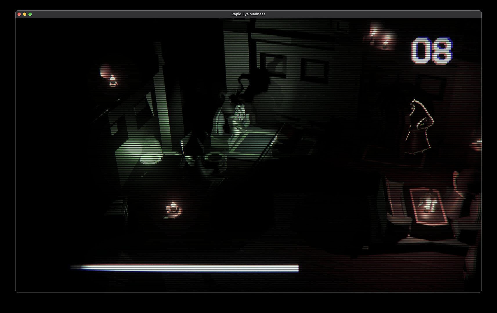 Think fast and adapt in this short collection of horror themed micro-games sure to keep you on your toes. You must win to survive against a Cthulhu Mythos inspired demigod of mysterious origin. Discover the stories of victims before you, run through the pixelated mayhem, and peel back the mystery that is Rapid Eye Madness.