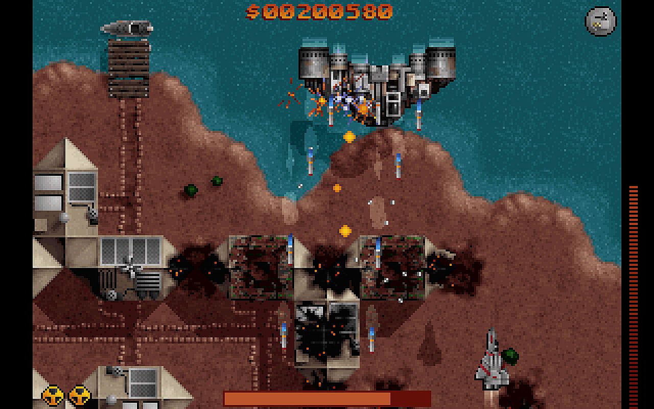 Discover secrets, find bonuses, and battle boss ships at the end of every wave. With each ship and ground target you destroy, you'll earn more cash to increase your ship's technology for the next wave. You'll be driven to kill and destroy until it's in your blood!