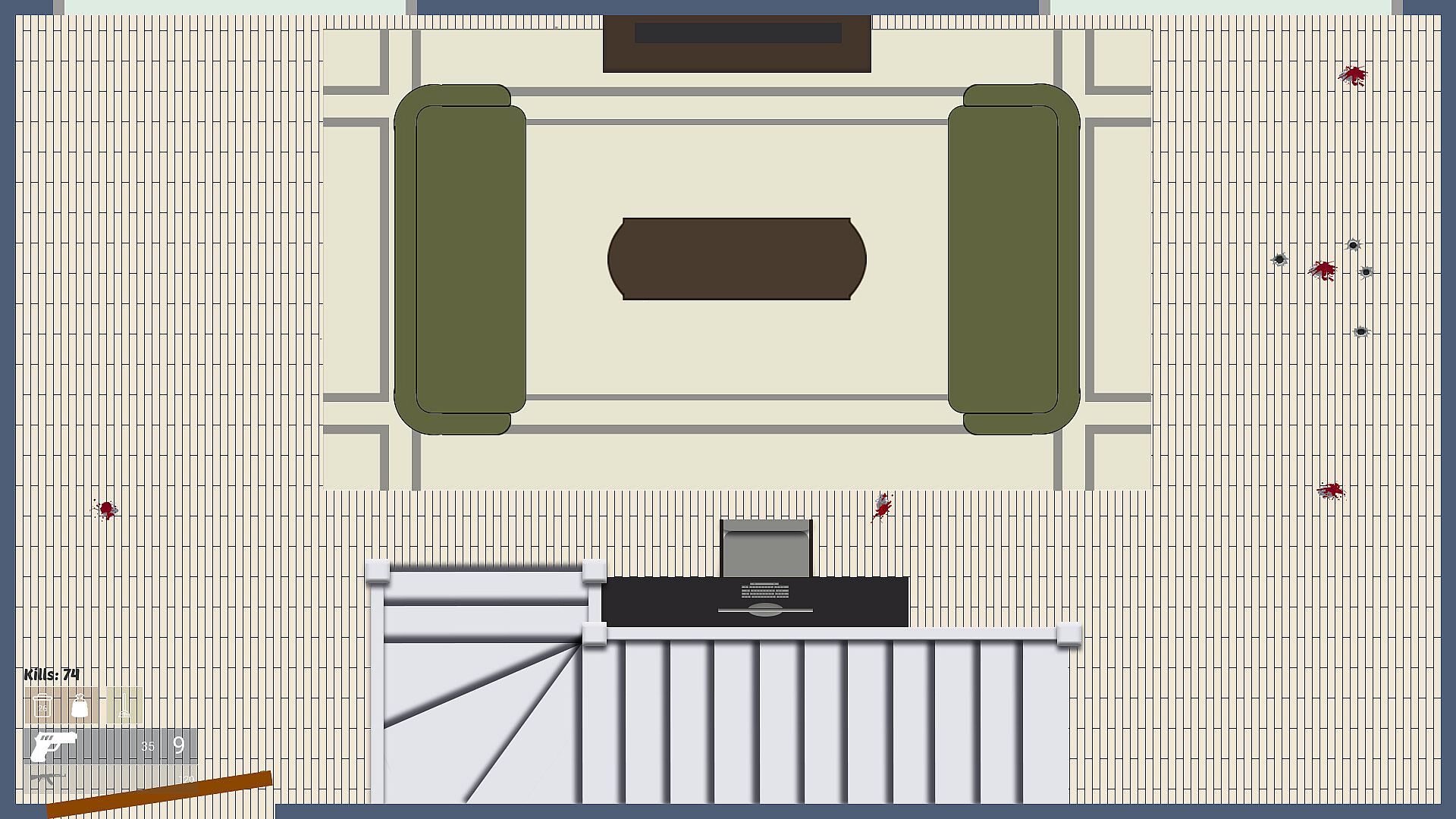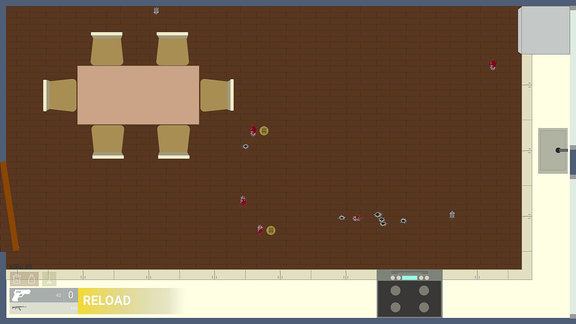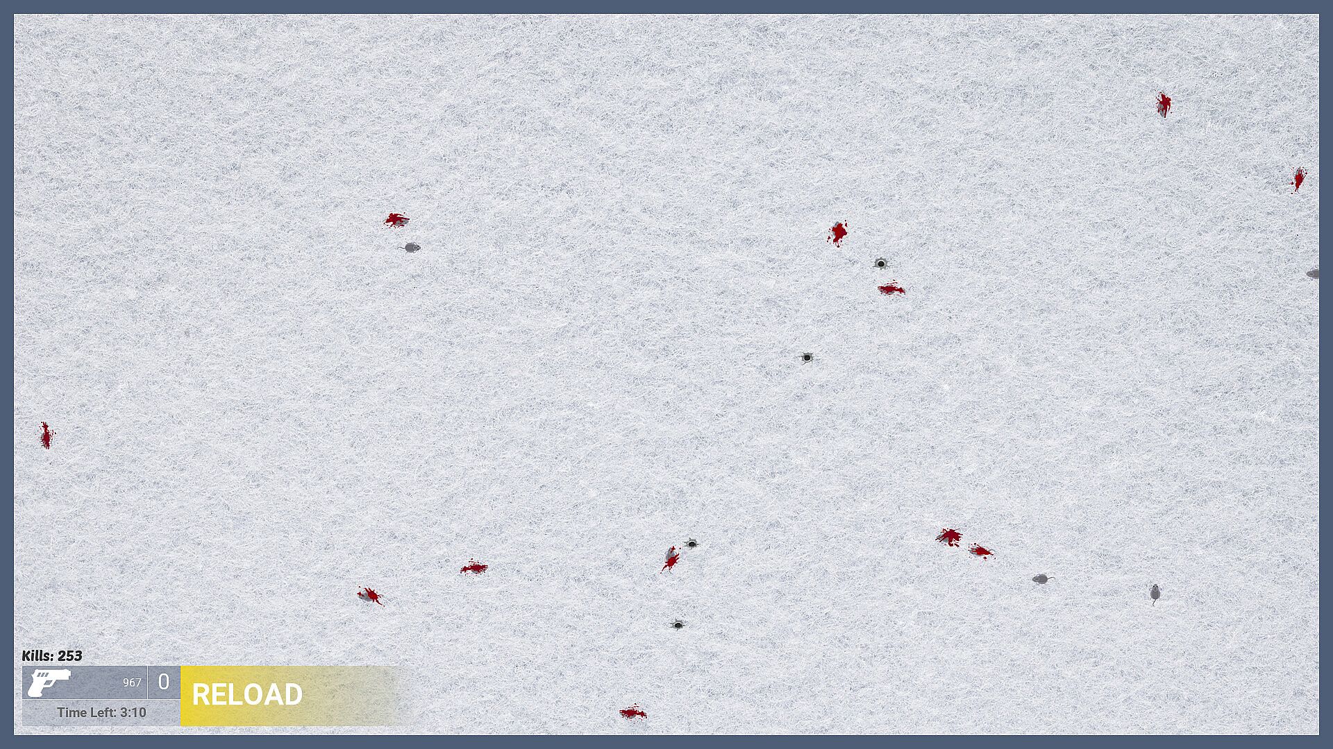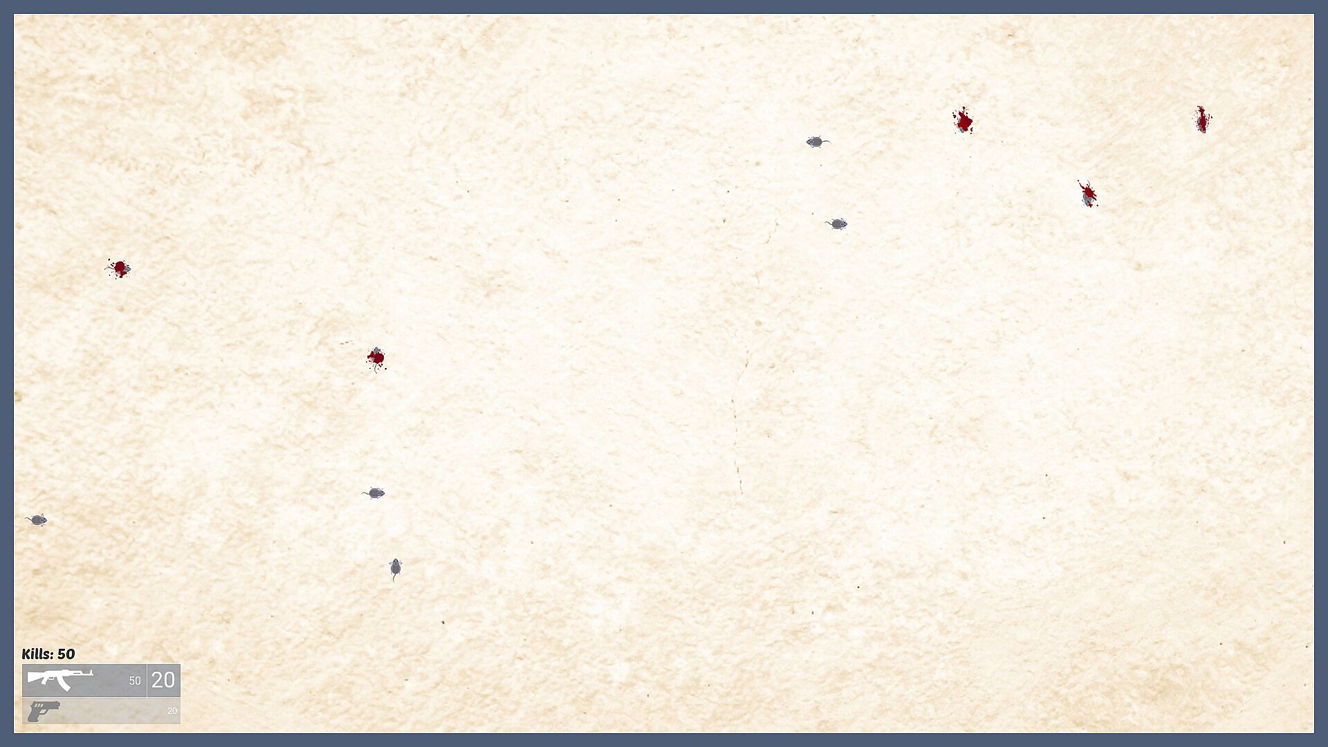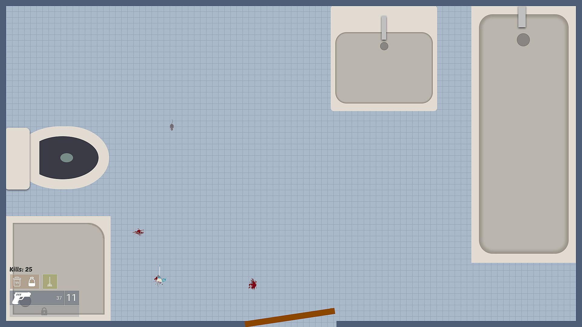 Your goal is simple, stop any rats from escaping. The game features two weapons to help you achieve this: a handgun and a machine gun. Swap between them to manage the invasion at different stages. You will need to be careful not to run out of ammo. Manage your ammo resources!As time progresses, more and more rats will invade. The pressure keeps mounting, and if that isn't enough to manage, you will need to clean up the mess and blood left behind to gain trash cans which can later be exchanged for benefits. You must carefully strategize when it's a good time to clean up.