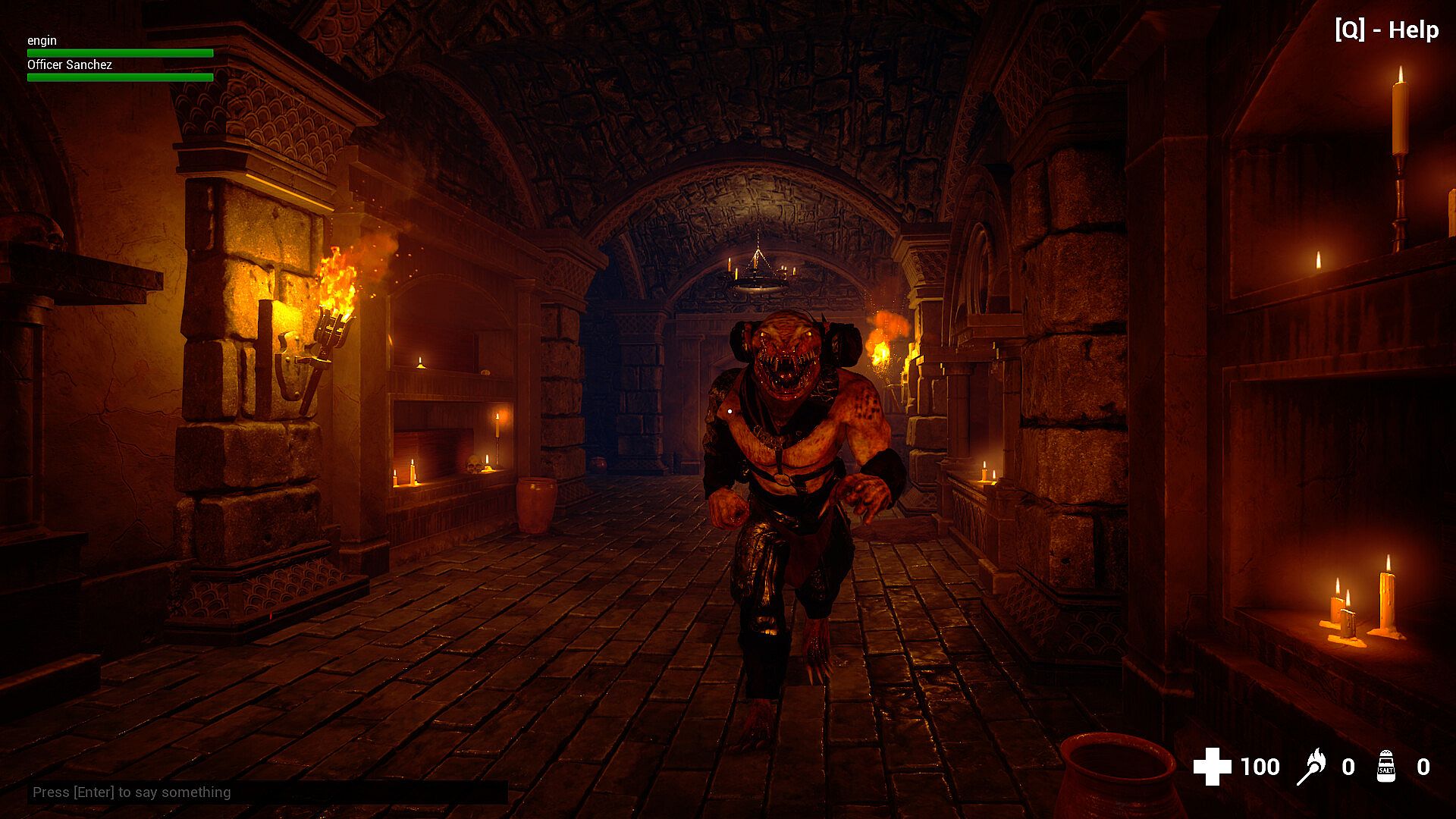 Ratman is a 1-4 player, online co-op, survival horror game. You and your team of fellow dwarf knights will enter dangerous dungeons that are home to a creature called “Ratman” and try to destroy his food supplies to stop him from attacking your village. Find matches on your quest to burn his cheese, but don't get caught.