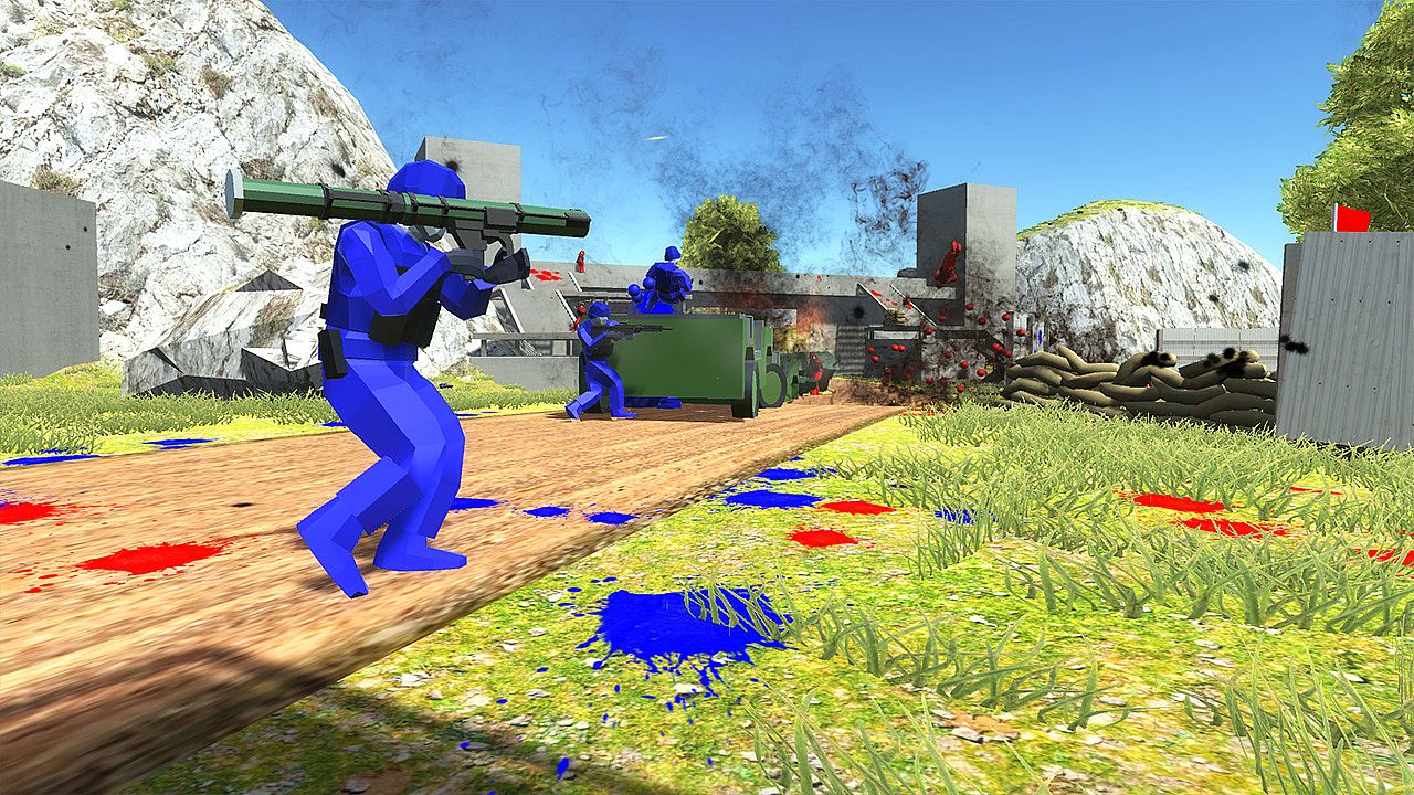 - Damaged soldiers drop team-colored blood splats, indicating where battles have taken place